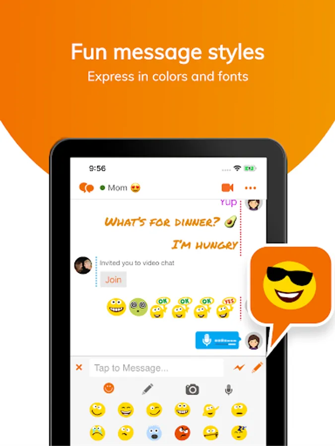 --> Super Fun: Message in Style! Send messages with your own personal message styles. New fun emoticons help you express better than ever before.