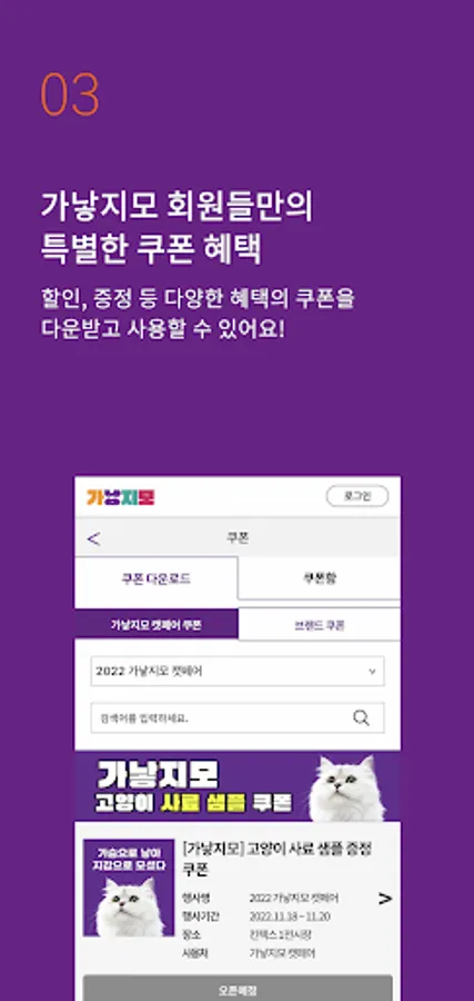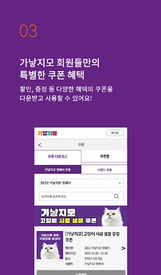 You can check the news of various events of participating brands more quickly and apply, starting with the ‘Gabeanjimo Cat Fair’ event called ‘Hyeja’.