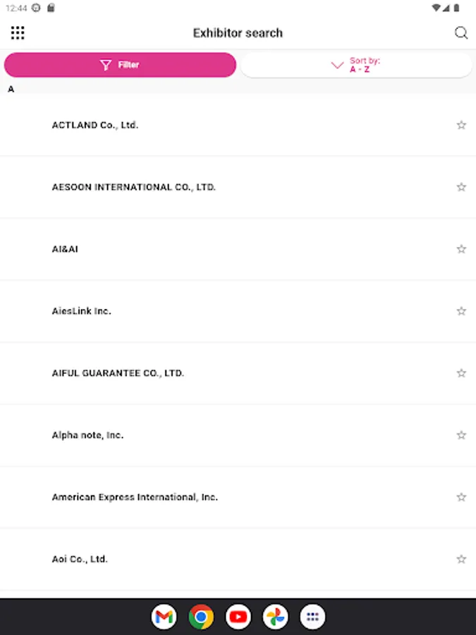 Exhibitors: search for companies and products, filter and sort functions available, also find contact persons ad exhibitor events. Add Photos and Notes to an exhibitor and share them.