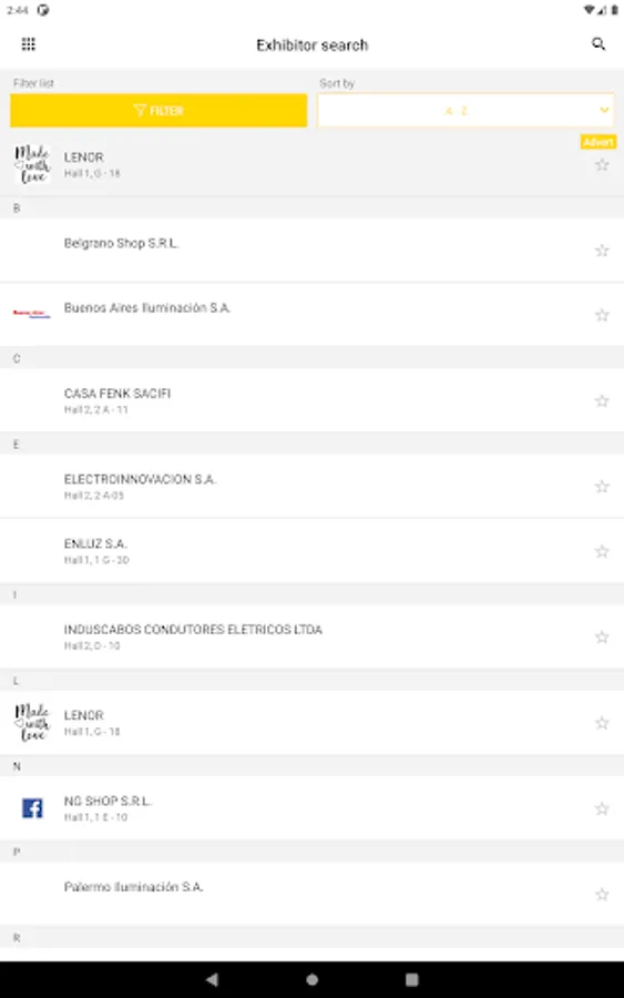 Exhibitors: search for companies and products, filter and sort functions available, also find contact persons ad exhibitor events. Add Photos and Notes to an exhibitor and share them.