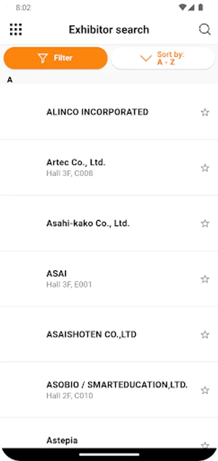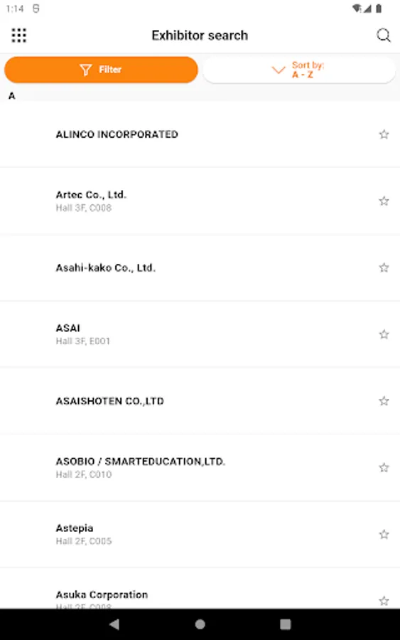Exhibitor search: search for companies and products, filter and sort functions, and add photos and notes to an exhibitor available