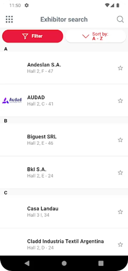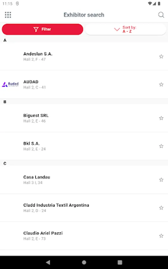 Exhibitors: search for companies and products, filter and sort functions available, also find contact persons ad exhibitor events. Add Photos and Notes to an exhibitor and share them.