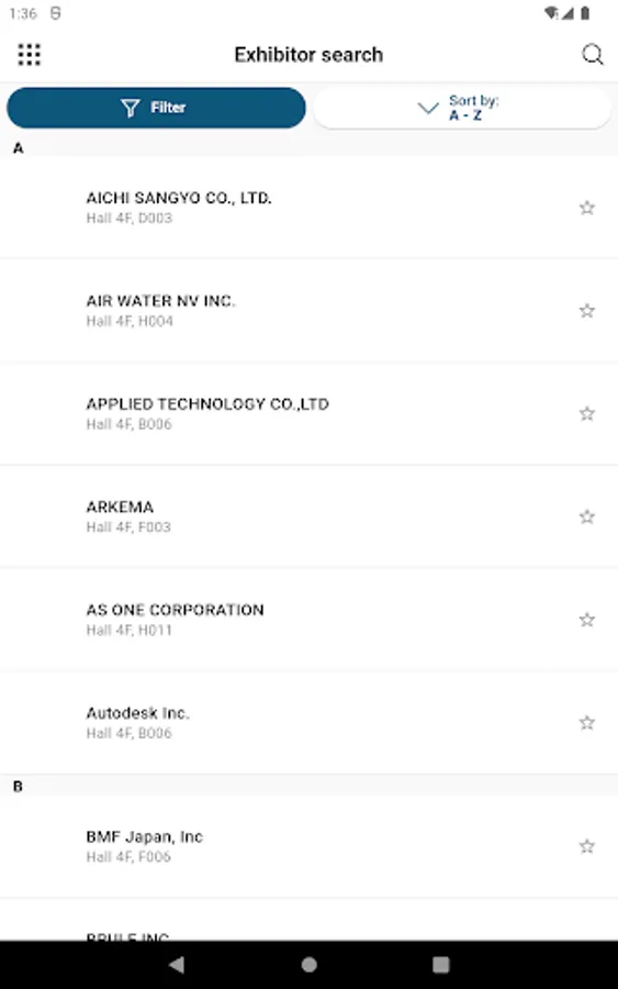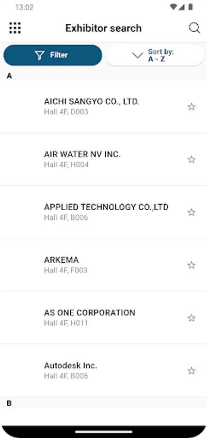 Exhibitor search: search for companies and products, filter and sort functions, and add photos and notes to an exhibitor available