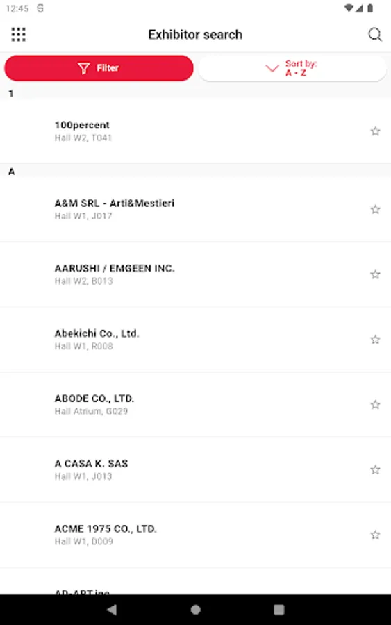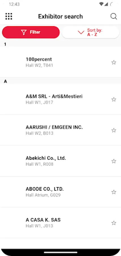 Exhibitor search: search for companies and products, filter and sort functions, and add photos and notes to an exhibitor available