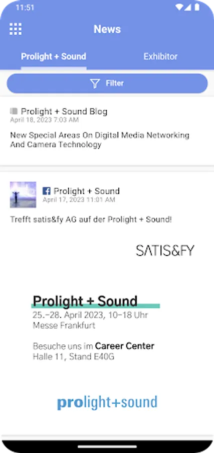 The Navigator-App is the official guide for visitors of Messe Frankfurt’s Prolight + Sound exhibition.