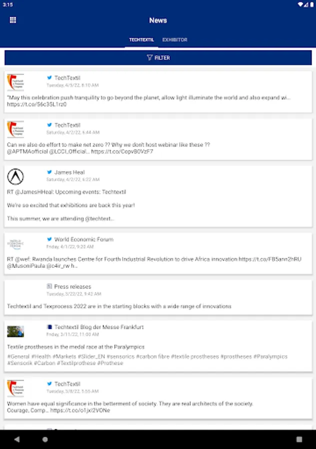 The Navigator-App is the official guide for visitors of Messe Frankfurt’s Techtextil exhibition.