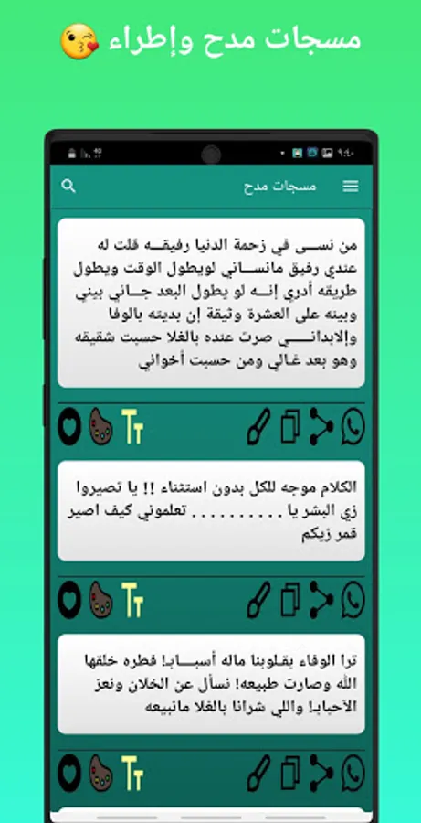 The program offers the best and newest words and cases for Facebook and cases for WhatsApp and for all social networking sites in order to exchange love between friends, loved ones and brothers by browsing the words you want and copying and pasting the case wherever you want, all from within this application only.