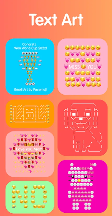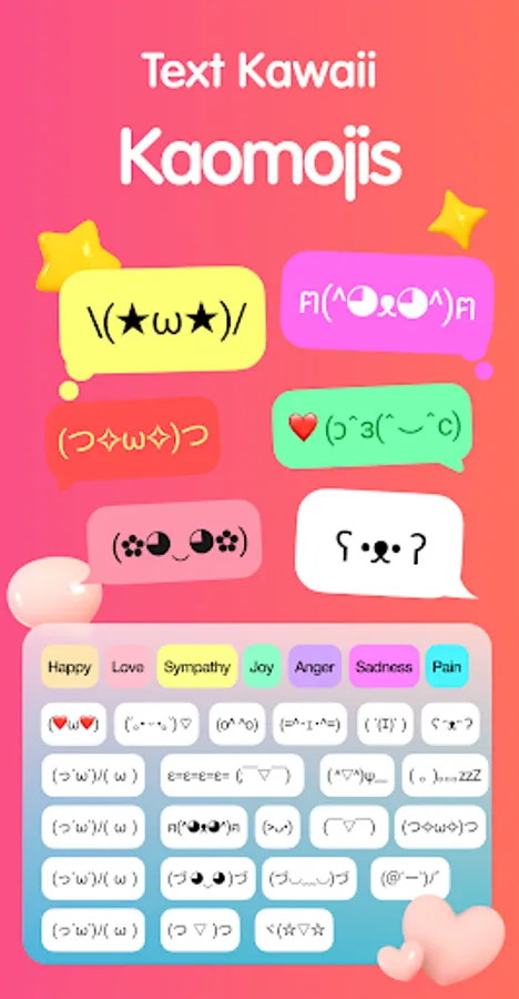 - More than 5000 emoticons, stickers, GIFs, The application synthesizes all the current emoticons. trending, different themes like love emoji, kpop emoji, text art, kaomoji…
