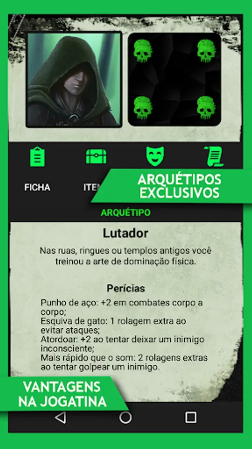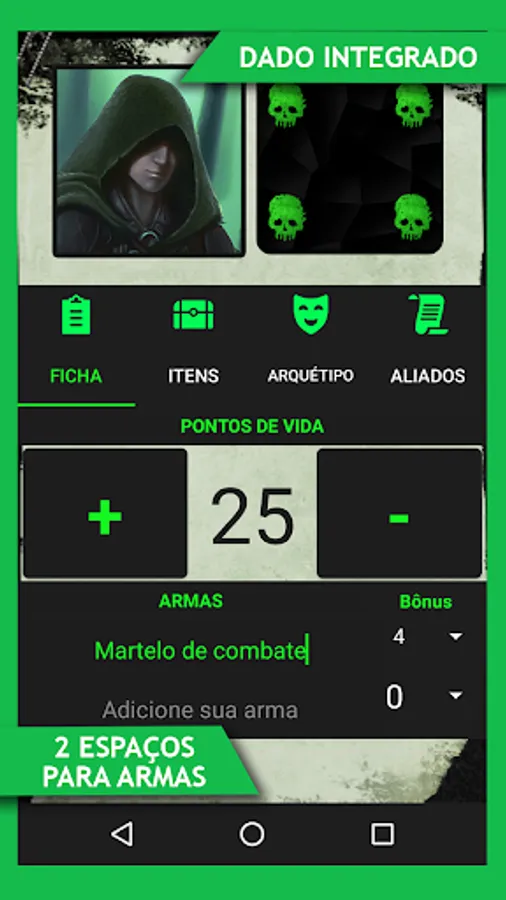 The app works as a complement to the Masters of Fear game books. Here you manage the characters' resources. Discover the adventures: https://www.catarse.me/mestresdomedo