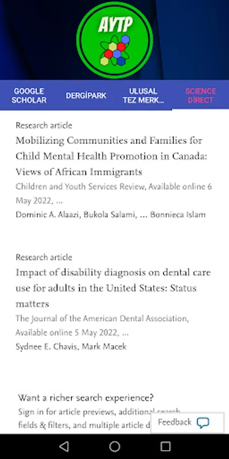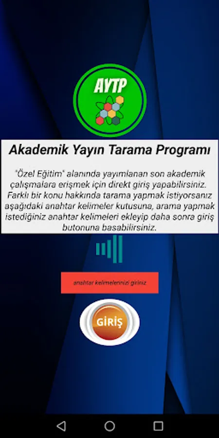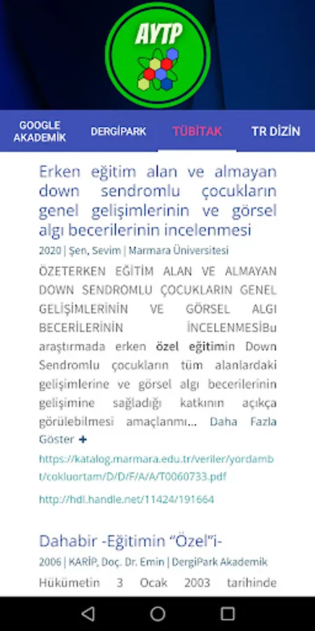 Essentially, I created the program for the benefit of those in the Special Education field. If the login button is pressed without entering any keywords, the latest studies in the field of Special Education are listed directly. But later on, I developed the key concepts add-on so that people from other fields can also benefit from it. You can search all sources at the same time and view the results by typing in the keywords box what you want to search for the subject or department you want. If you have any suggestions for the development of the program or if you encounter a problem, you can contact us.