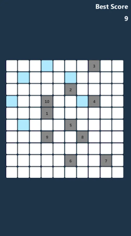 You have 100 squares to fill. Start from a square as your wish and try to fill the board. You can jump 2 squares in horizantal - vertical, 1 square in cross-axis. Guideline colors will help you with the possible next movement.