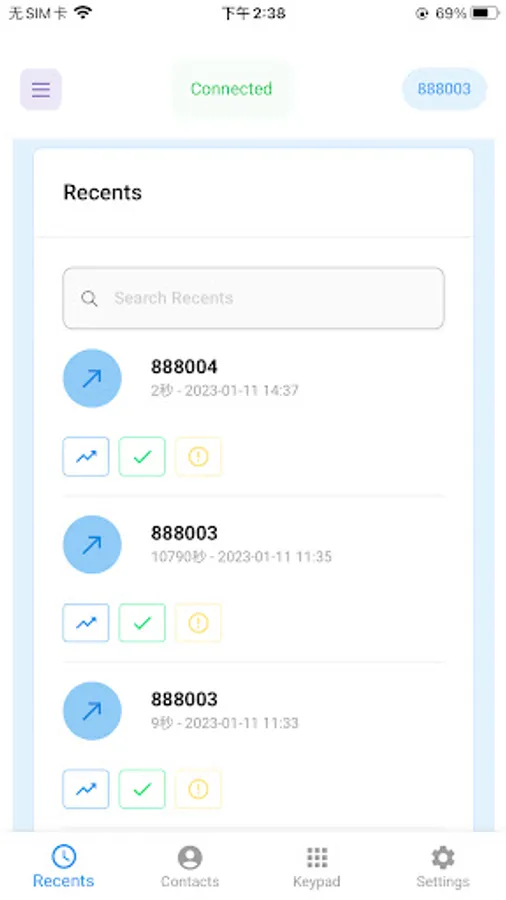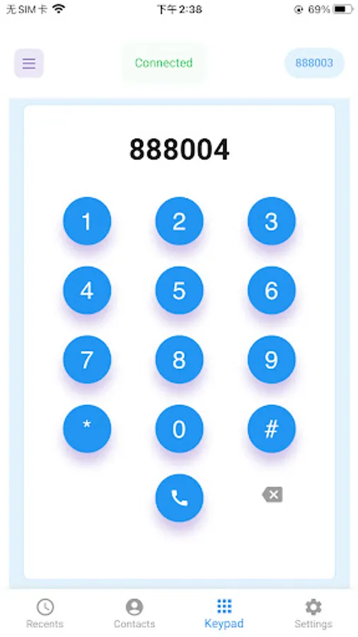 MetaVoip is a free dial-up software based on VOIP protocol. You can use MetaVoip to perform free voice calls, contacts, call records and communication node selection functions. 1. Free voice call: enter the MetaVoip number of the other party in the Keypad page and click Dial to complete the free voice call function. 2. Contact: Click the Add button on the Contacts page to enter a new contact, or select a quick search contact to make a voice call. 3. Call records: On the Recents page, you can view all call records, including call time, duration and call number, and quickly search the call records of the corresponding number through the search function. 4. Communication node selection: click the upper left corner of the software to switch your communication nodes at any time and select the optimal call line.
