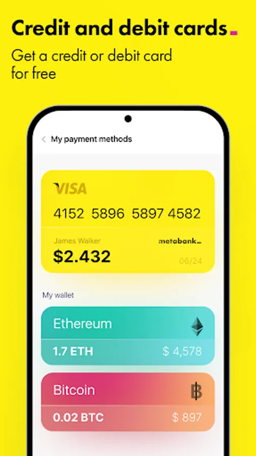 Metabank app users can get a virtual credit or debit card in their app. Download the app and get your card instantaneously. And by the way: you can use your crypto to pay with our cards. Cards are available from December 2022.
