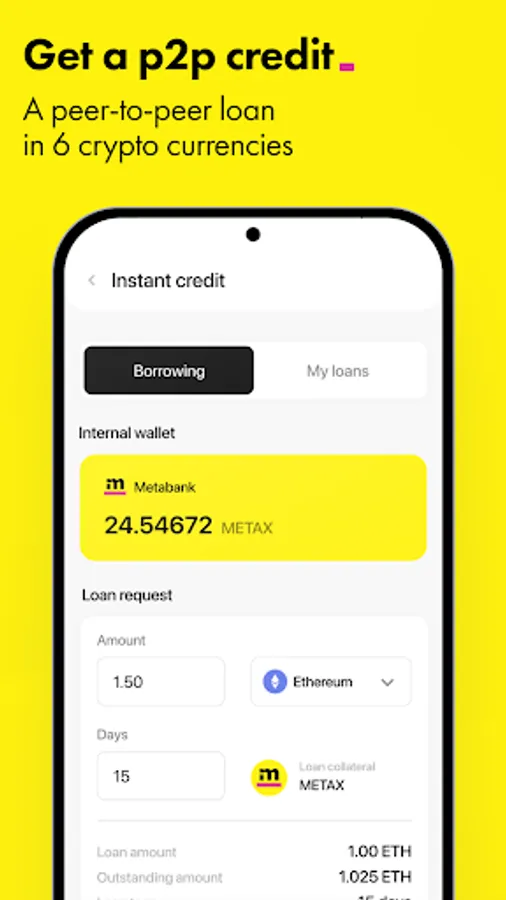 Do you need a financing? Get a metabank peer-to-peer crypto loan. Metabank is matching lenders and borrowers. We have over 6 cryptocurrencies available as a collateral. For example use our METAX token or even land purchased in the Metaverse. With metabank the answer is instant once you applied.