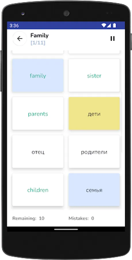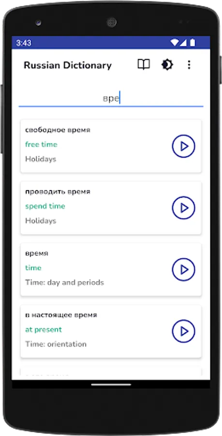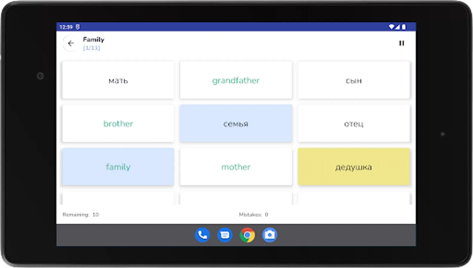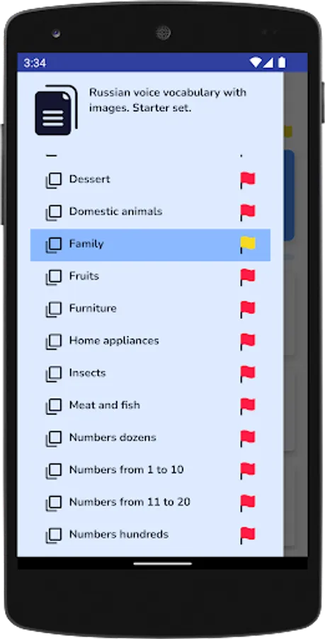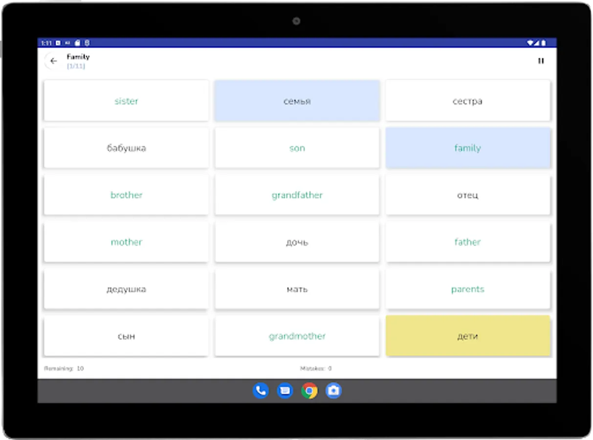 • voiced cards with Russian words and phrases