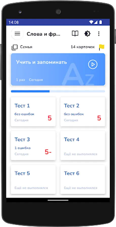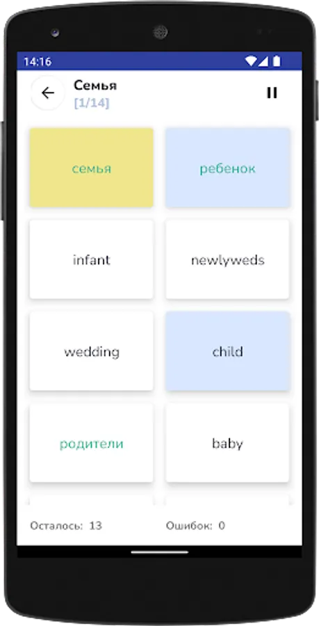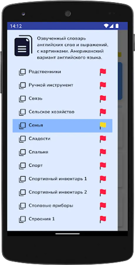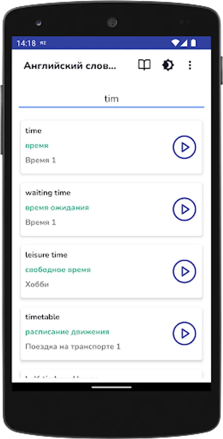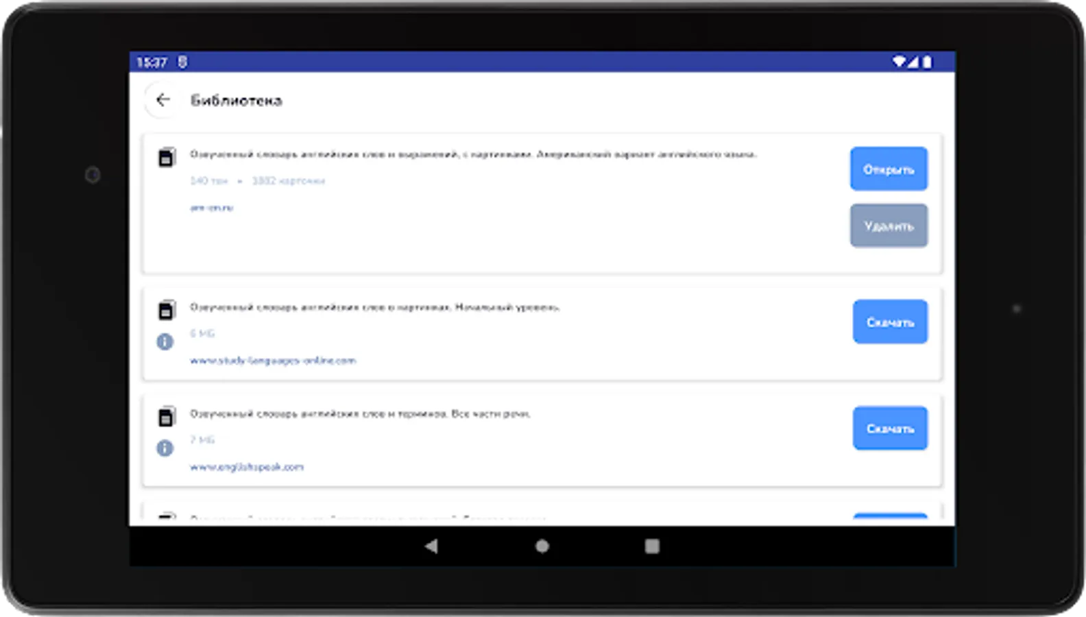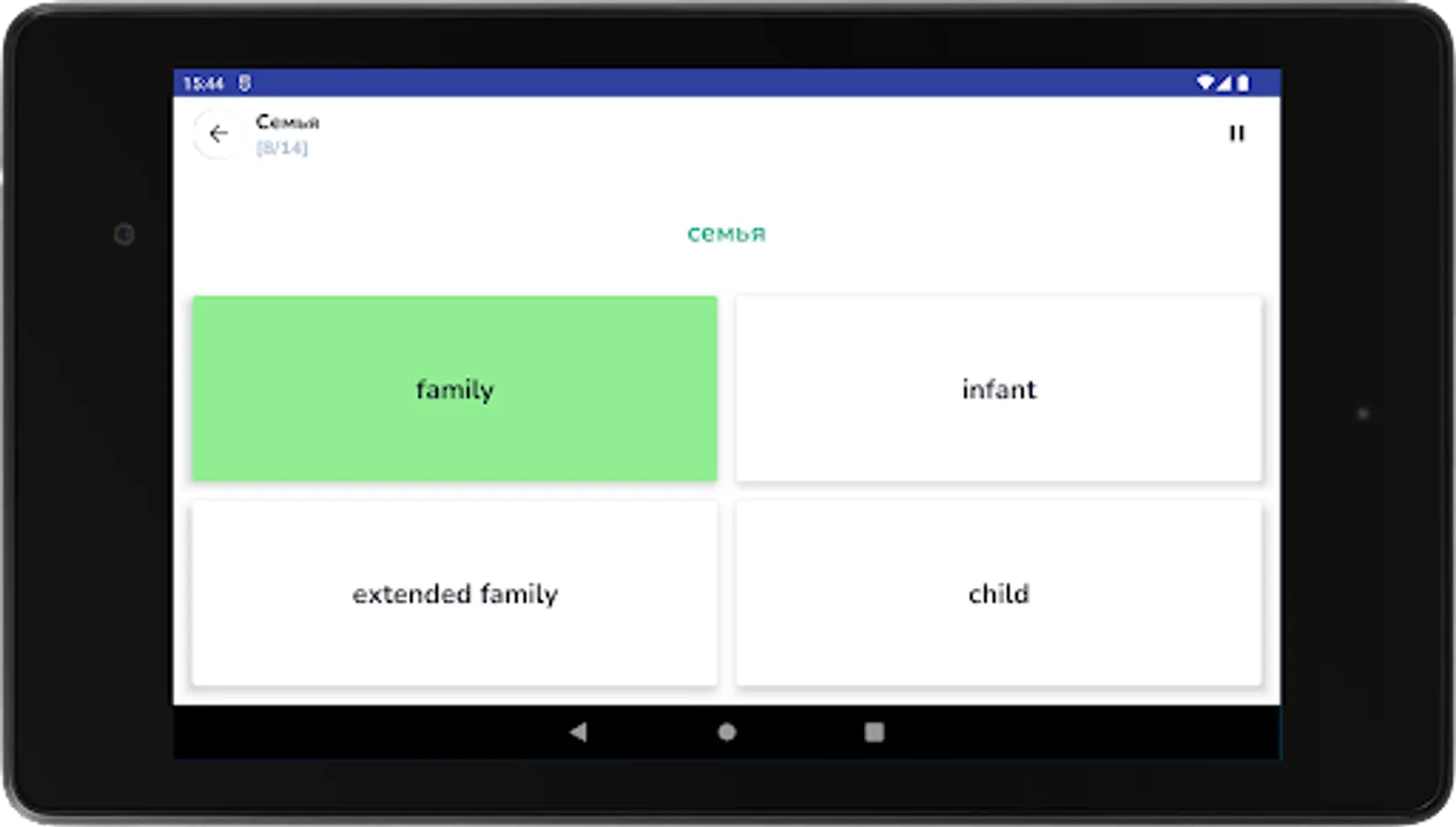 Cards with words for memorization are grouped by topic. Each topic has 10 - 15 cards. By devoting 15 minutes a day to training with the simulator, you are guaranteed to remember one topic after completing all the test exercises. By doing this, you will learn 100 English words a week - learn to read, write and perceive these words by ear.