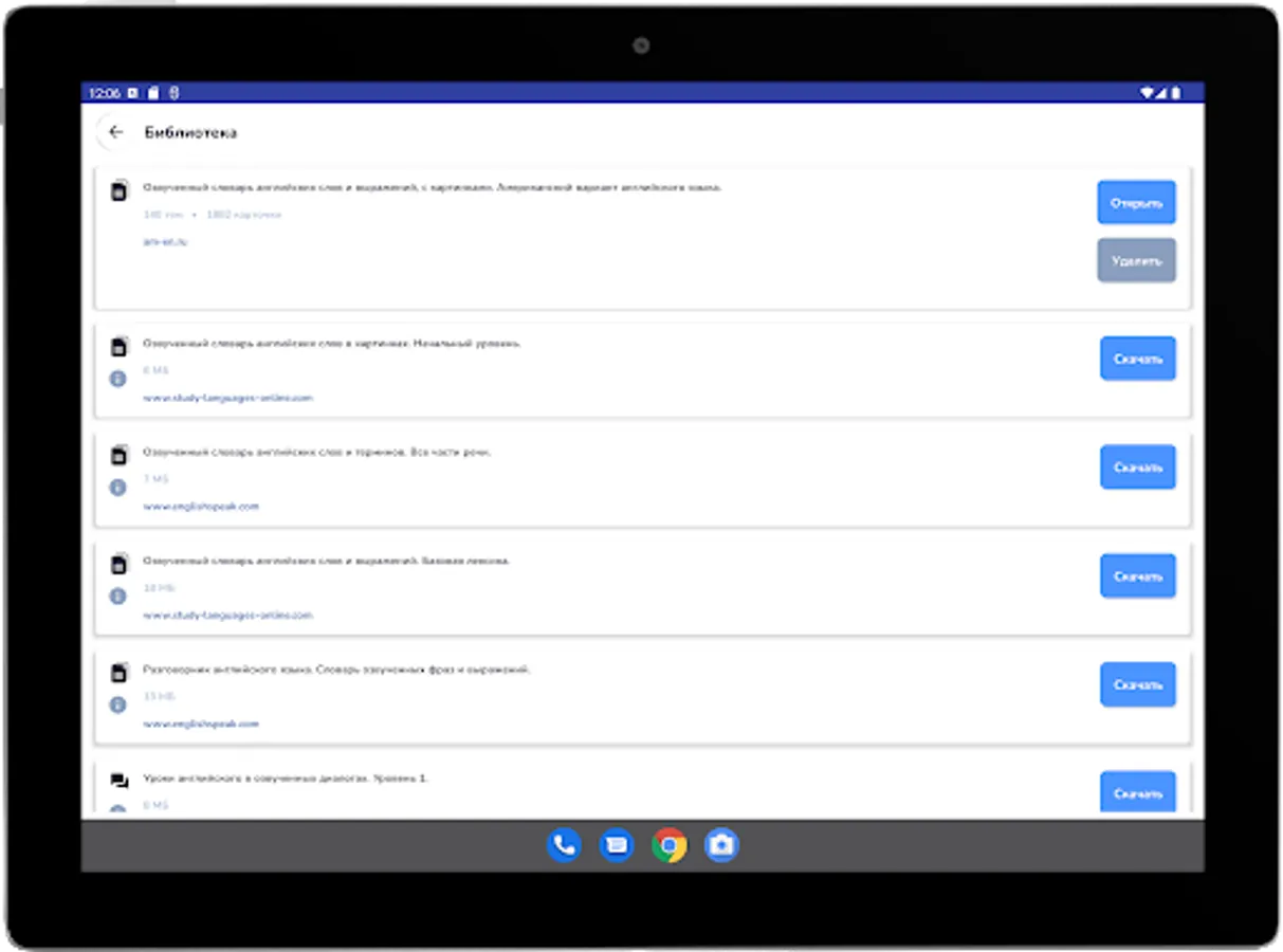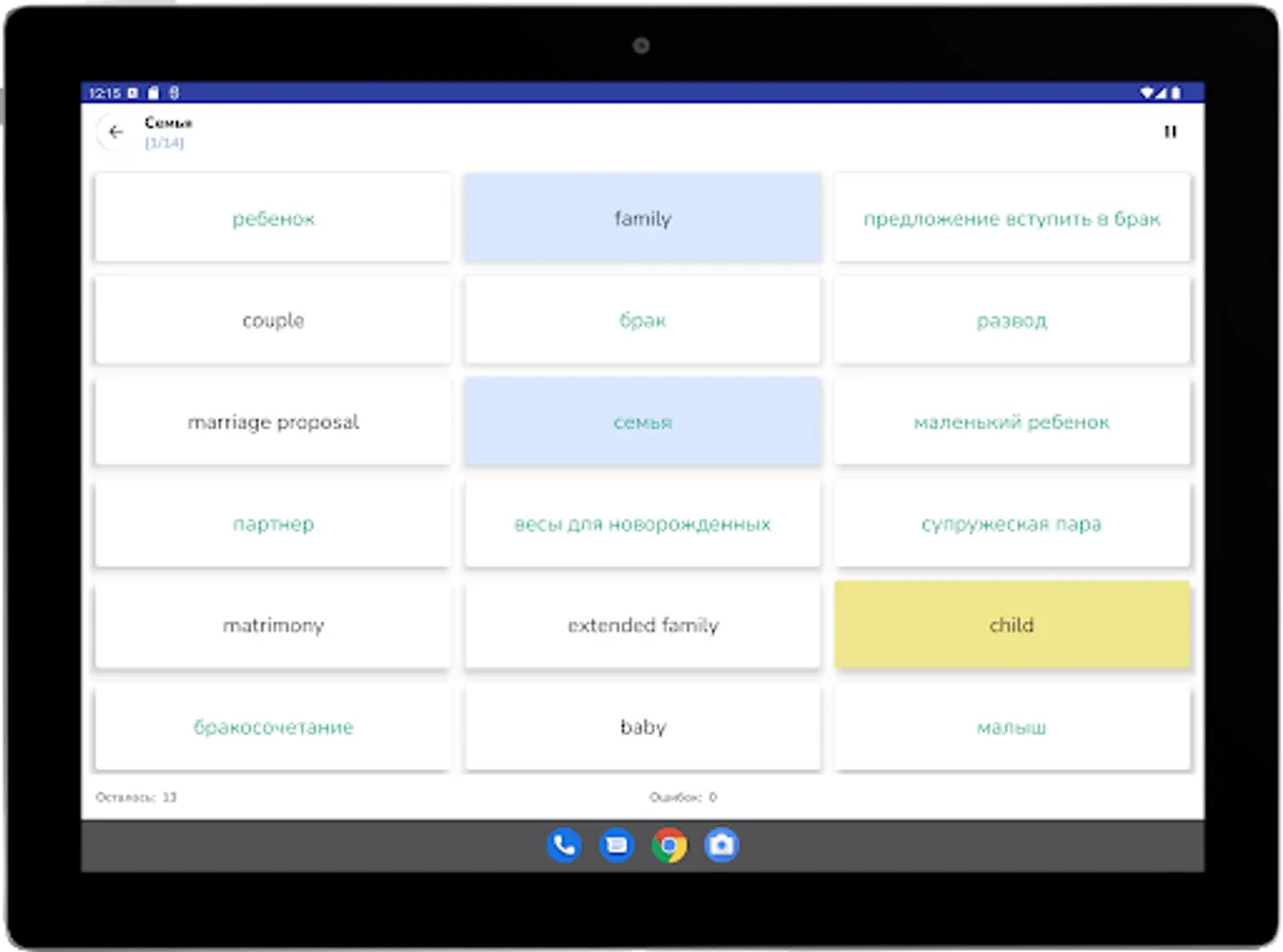 A convenient and simple vocabulary trainer for teaching English using the original method. Deep memorization of words and phrases in a short time. Key Features: