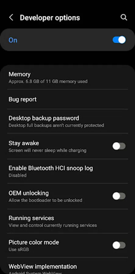 - Shortcut to hidden button menu to enable developer options