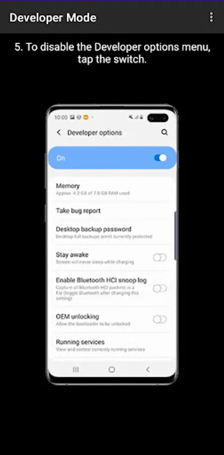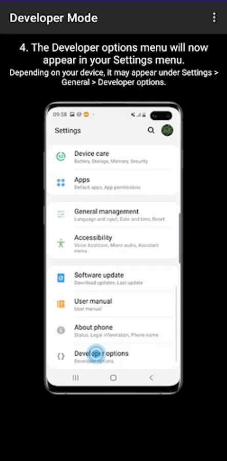 - In-app guide to enable developer options