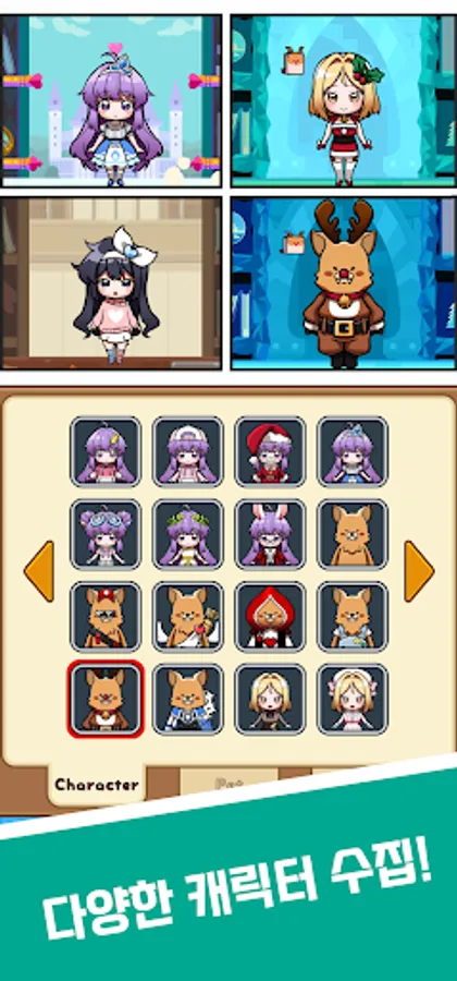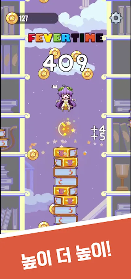 Novell Jump is a casual game featuring Novelpia's mascots, 'Nobel, Pia, Meta, and Elk', a web novel service. It is a simple casual game in which the player manipulates the characters to step on the flying platform and climb to the top of the Novelpia Magic Library.