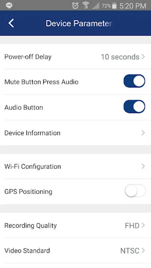 Main functions: • Control (video or photo) • Preview (real-time image) • File browsing (even if there is no need to pause during recording) • Online play (the file in the driving recorder is not directly downloaded by the mobile phone) • File download • Driving recorder parameter setting.