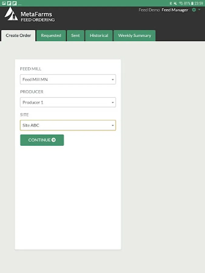 • Place feed orders on-site and on-demand at the site level using your current diets and phases