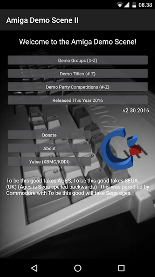 A huge database with the best Amiga demos from back in the days + new ones aswell. All ready to be streamed directly to your smartphone/tablet OR to your XBMC / KODI box and TV.