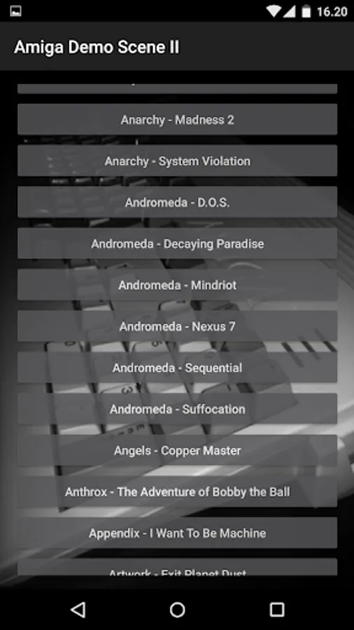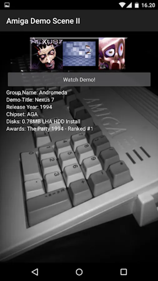 The application database is not yet completed with all Amiga demos ever released but I promise you I will update and improve the application as much as possible.