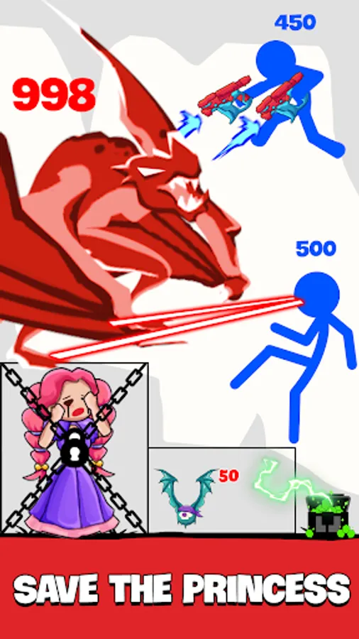 The game is the perfect combination of action, strategy and puzzle games, where you use your wisdom and strength to protect the kingdom and obtain infinite treasures same special. Your mission is to charge up, grow as a warrior and defeat horror beasts, then kill their giant Boss and save princess.
