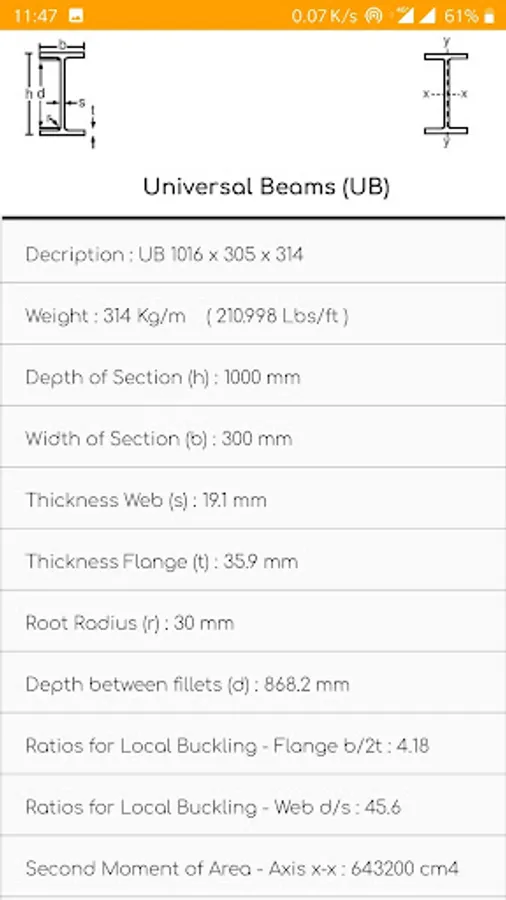 This app is Handbook for Structural Designers, Draughtsman, Engineers, Fabricators ,etc which provides complete details of the Standard Sections available in market like UB, UC, W-Section, H-Beams, I-Beams, JIS Beams, European, British Channels, SHS & RHS Tubes, Circular Pipes, Gratings, Flat Bar & Round Bar, etc.