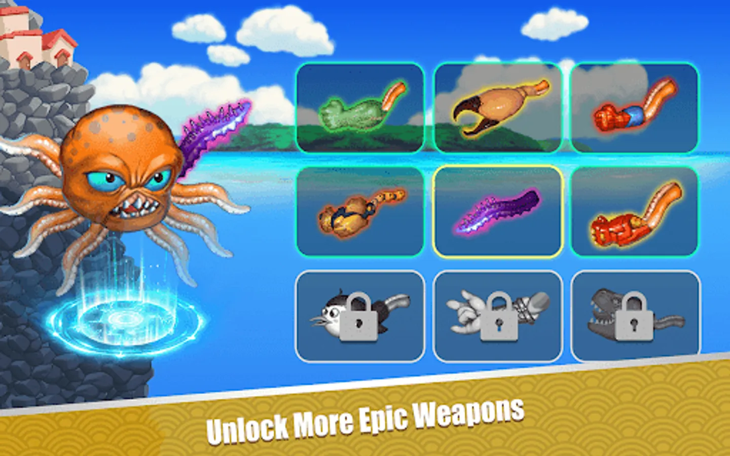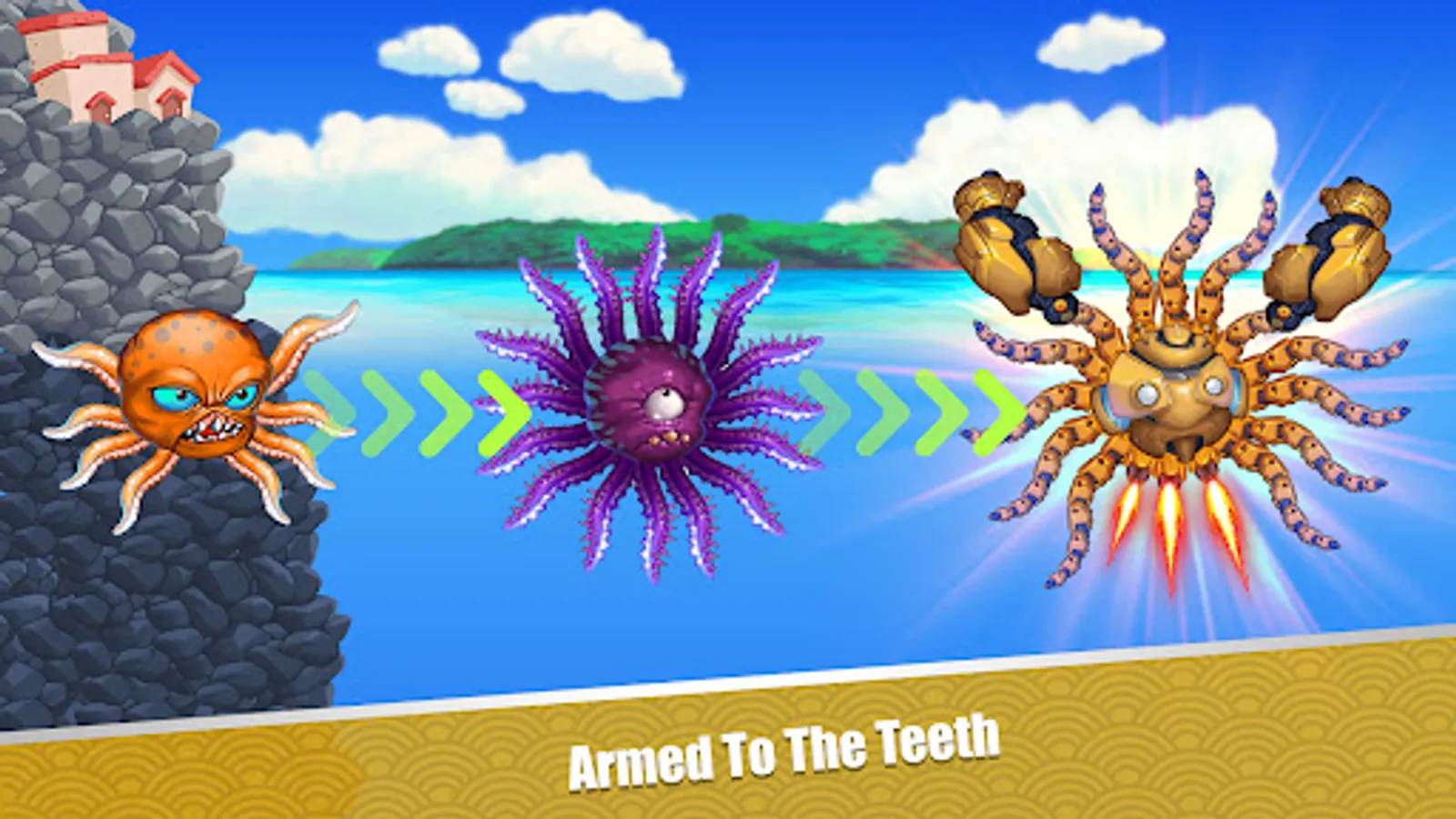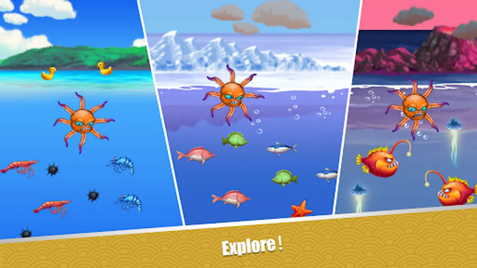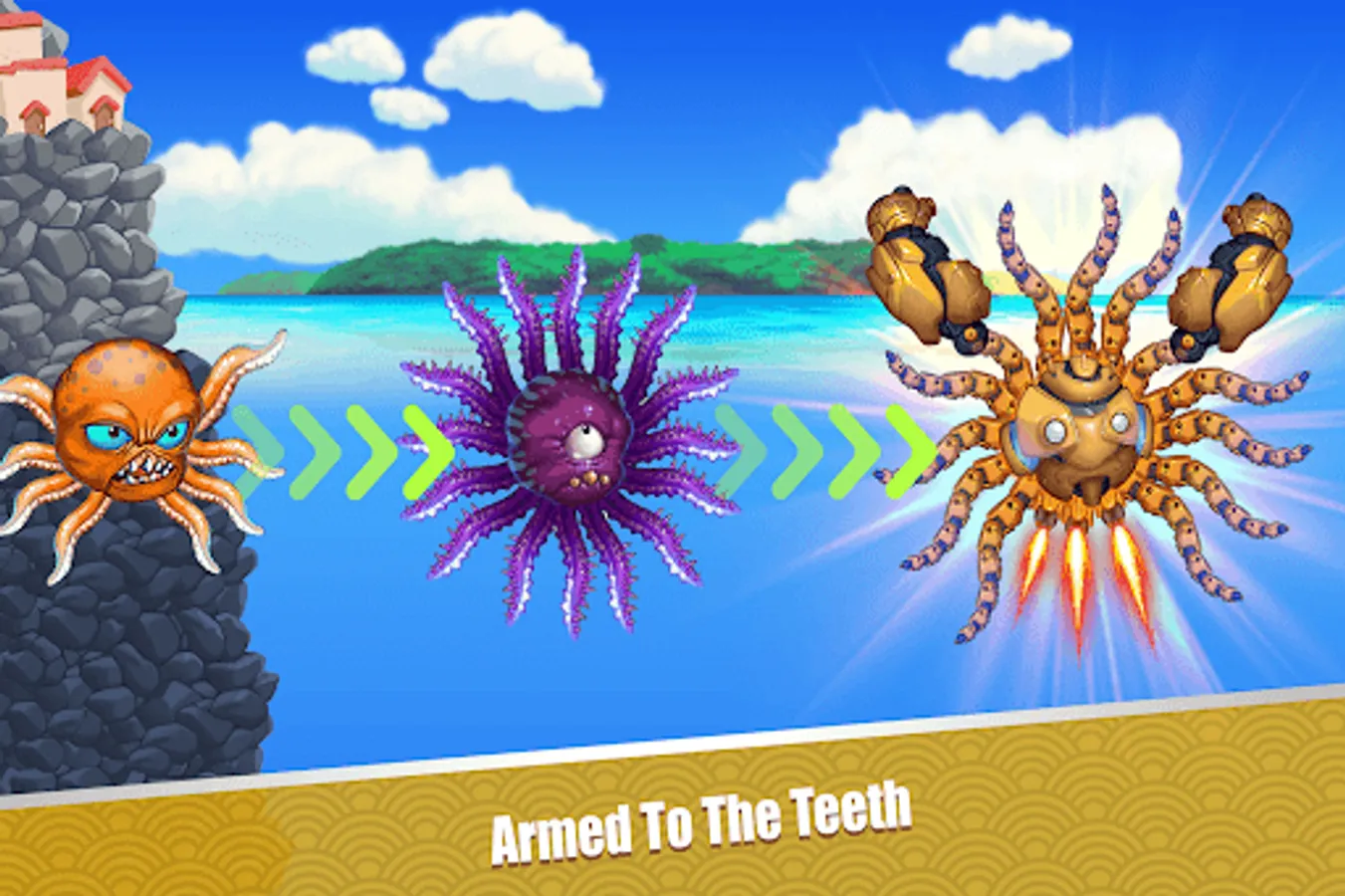 Fierce destiny struggle! A huge ocean world is waiting for you to explore and conquer! Hunt, scavenge, and slaughter to find and collect strange and powerful pieces to combine to help you become the Octopus King!
