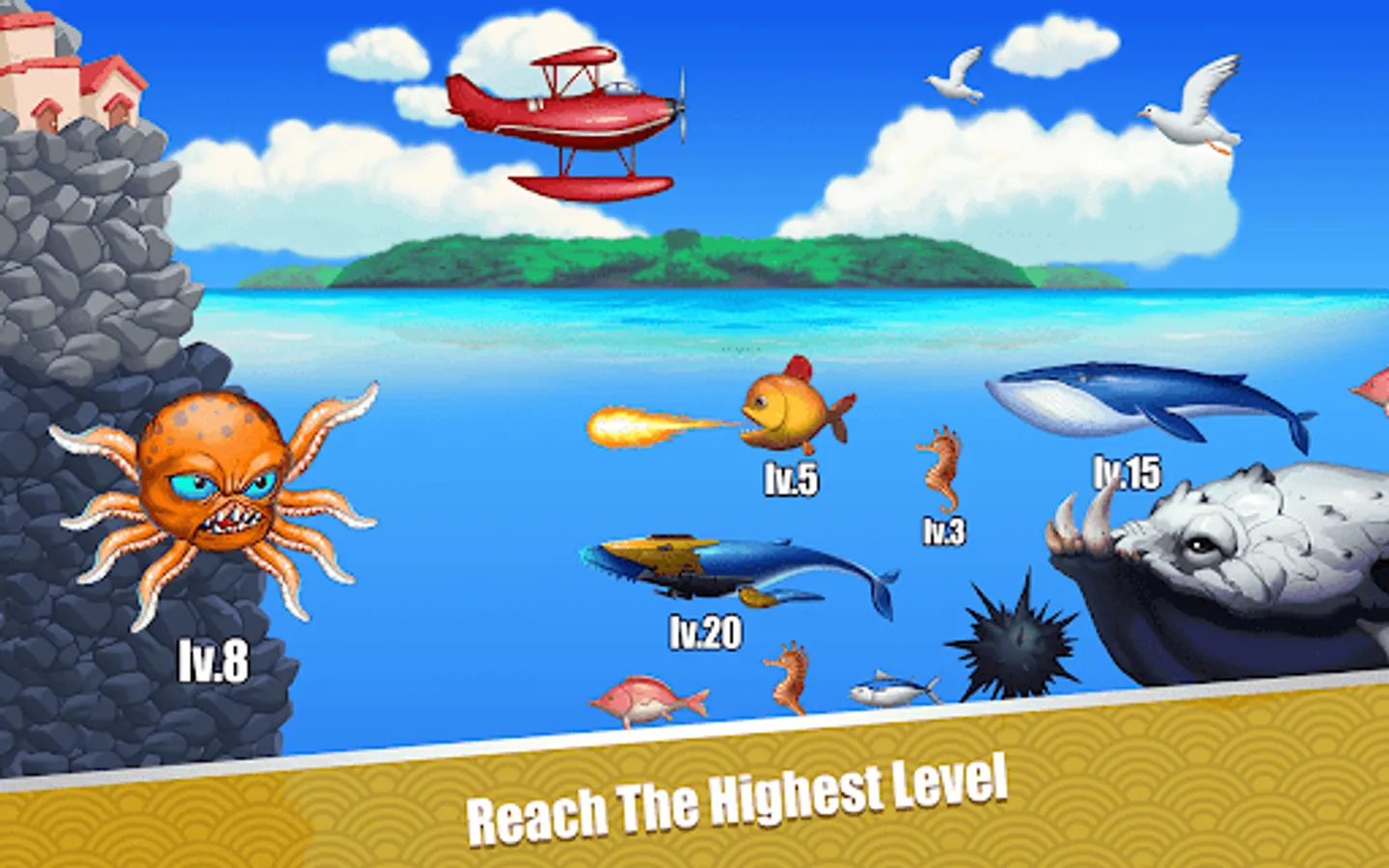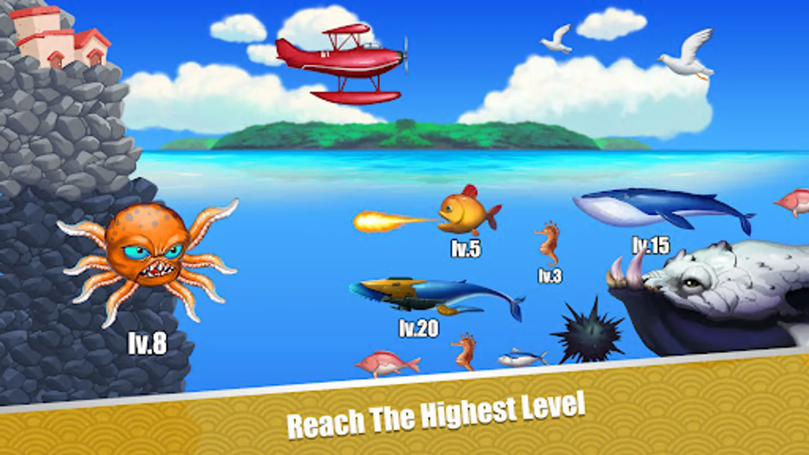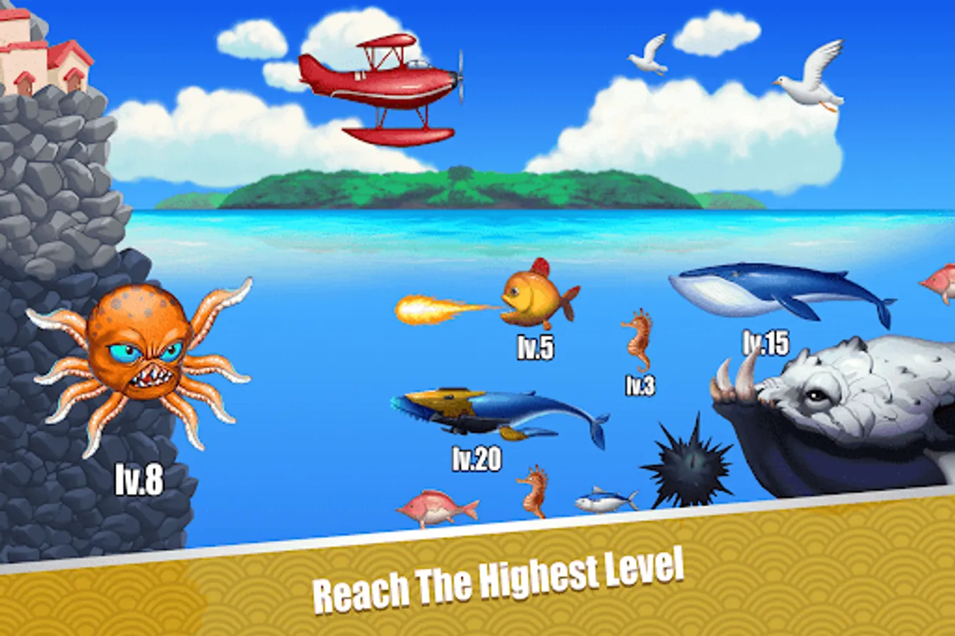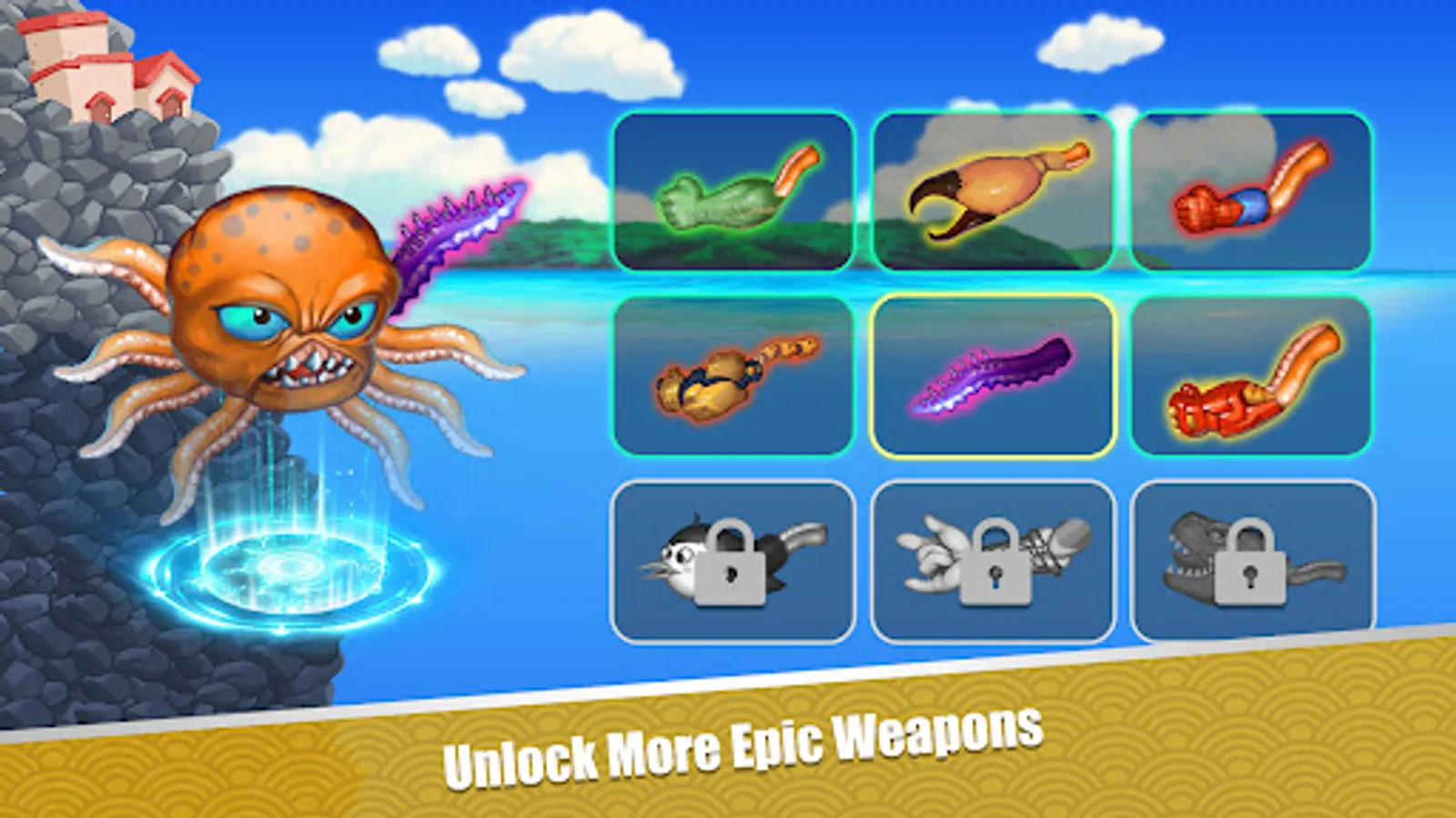 Fierce destiny struggle! A huge ocean world is waiting for you to explore and conquer! Hunt, scavenge, and slaughter to find and collect strange and powerful pieces to combine to help you become the Octopus King!
