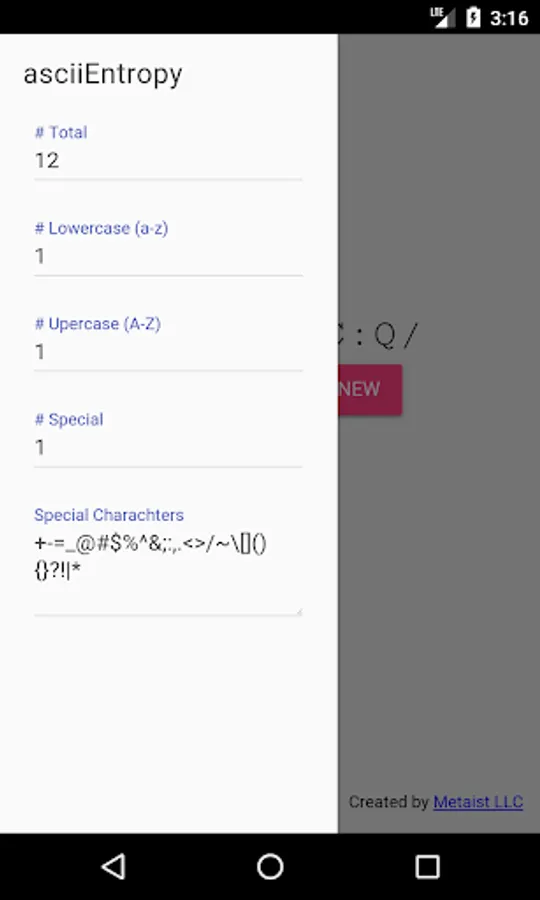 Options include password length and character classes.