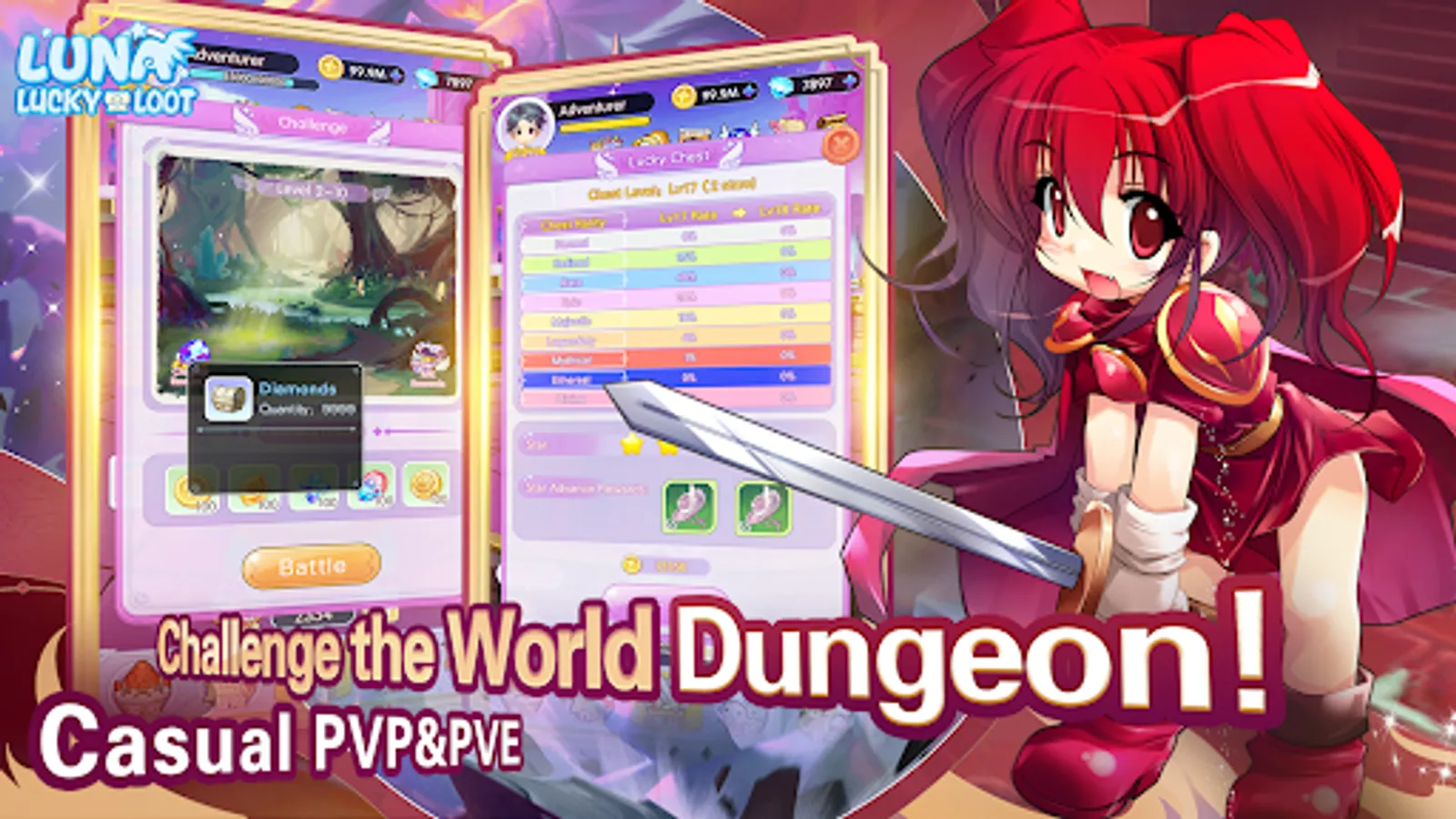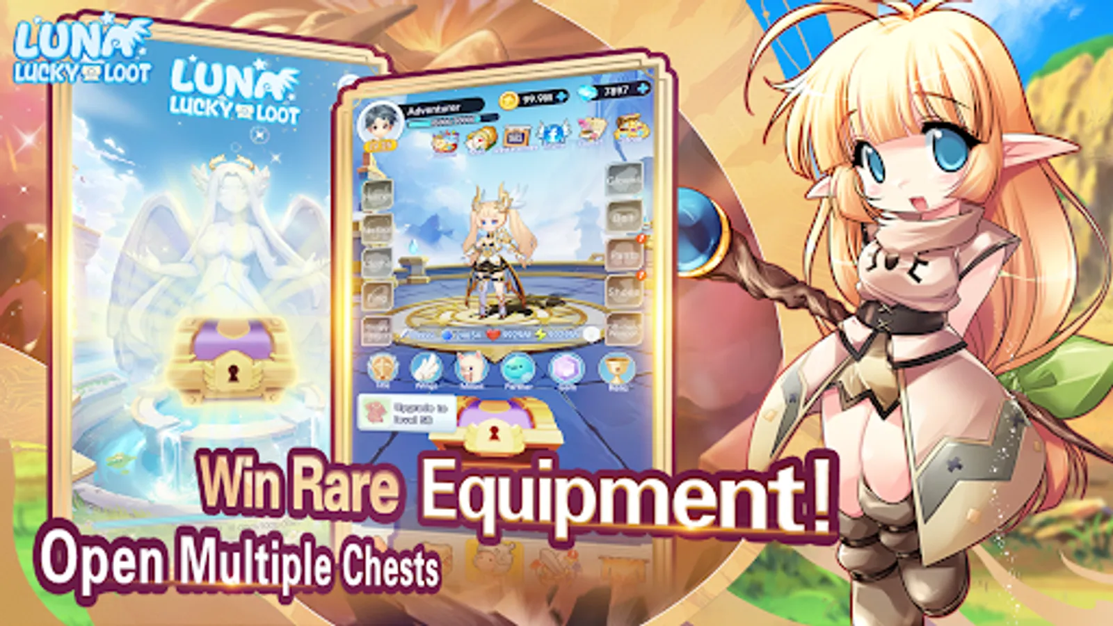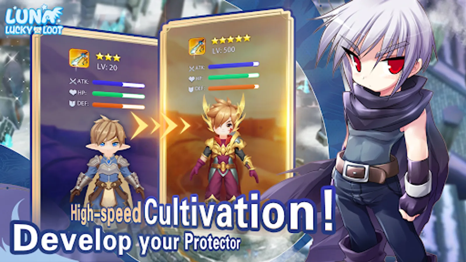 Get ready for an adventure with the cutest guardians! Lucky Loot boasts a charming art style that brings the classic LUNA characters to life in a more lively and adorable way. Immerse yourself in the world of LUNA and experience its irresistible charm!