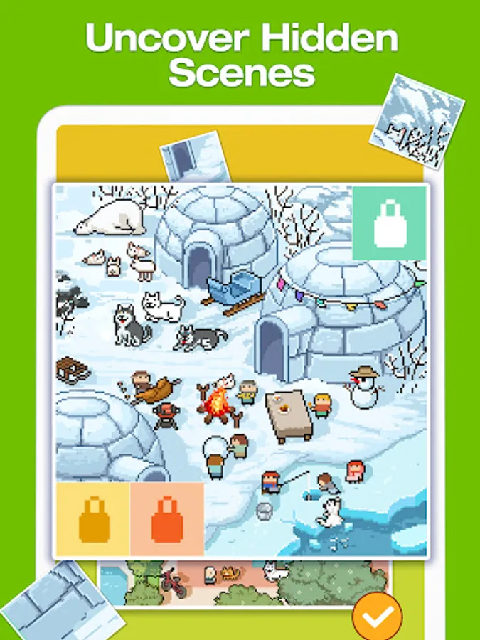 Solve puzzles and unlock hidden pictures