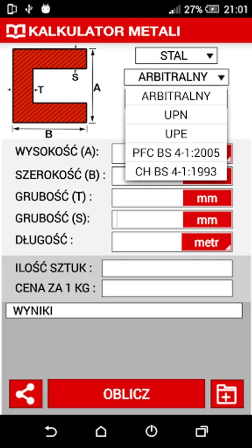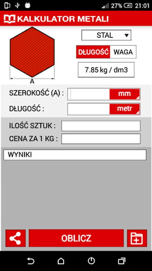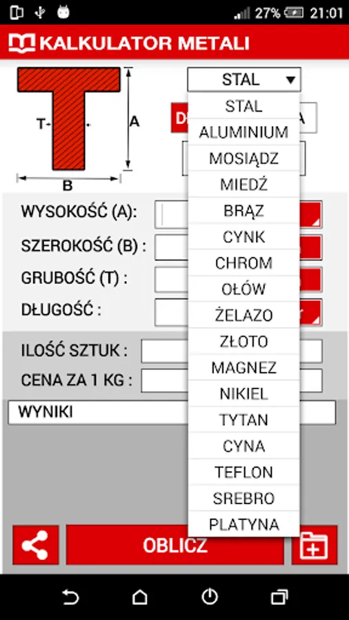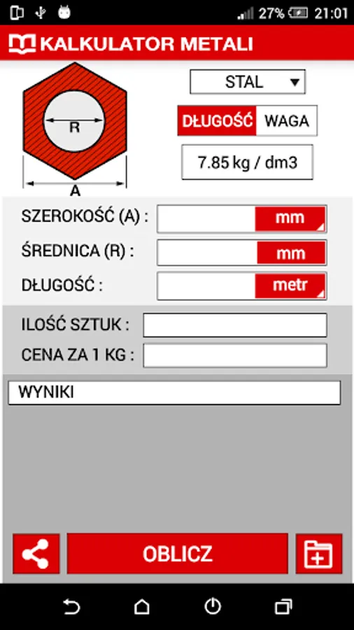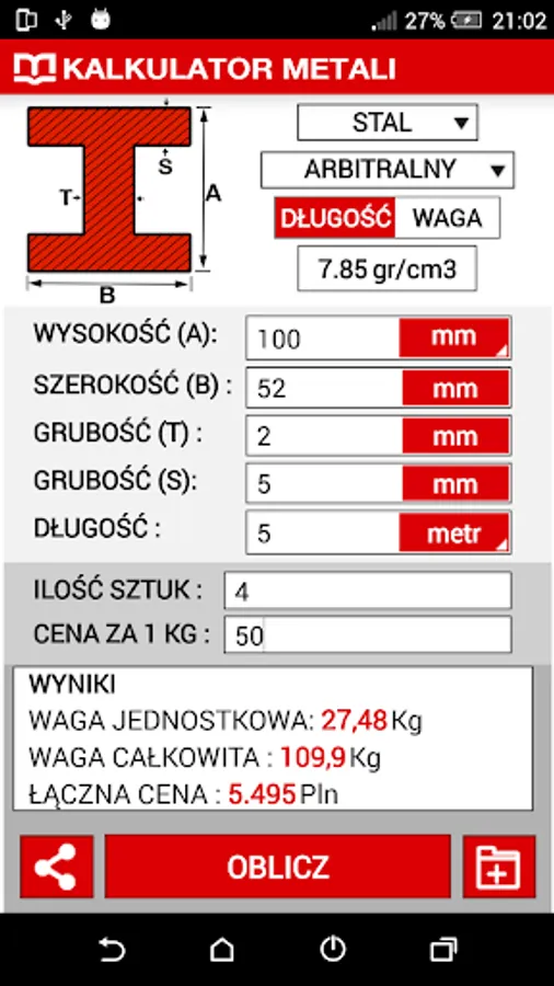 Popular Metal calculator available on the Metale.pl now is also quick and simple application allow to calculate the weight of metal from your mobile phone!