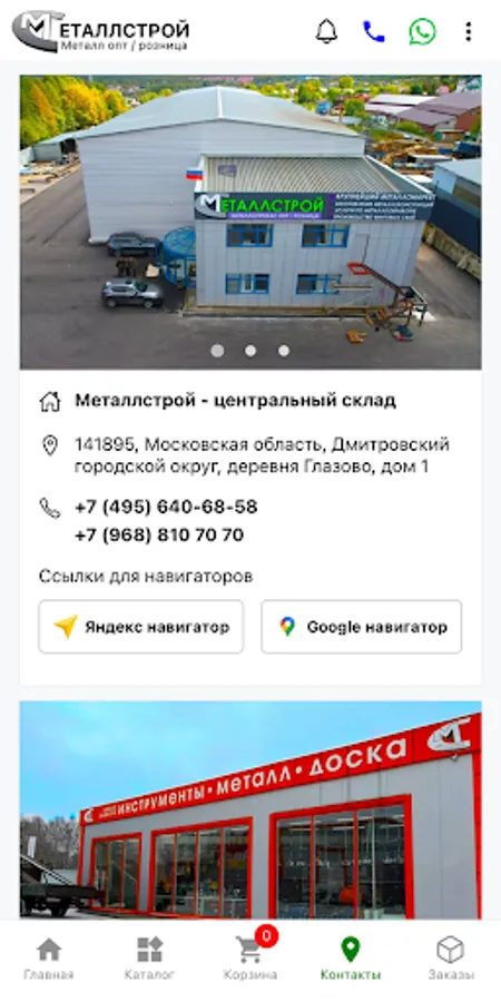 The metal depot of the MetallStroy company is located at the address: Moscow region, Leningradskoe shosse 18 km. From the Moscow Ring Road, the village of Black Dirt.