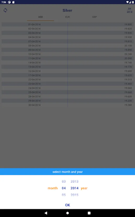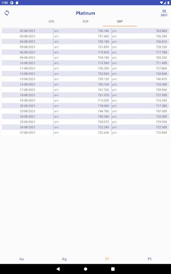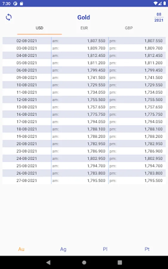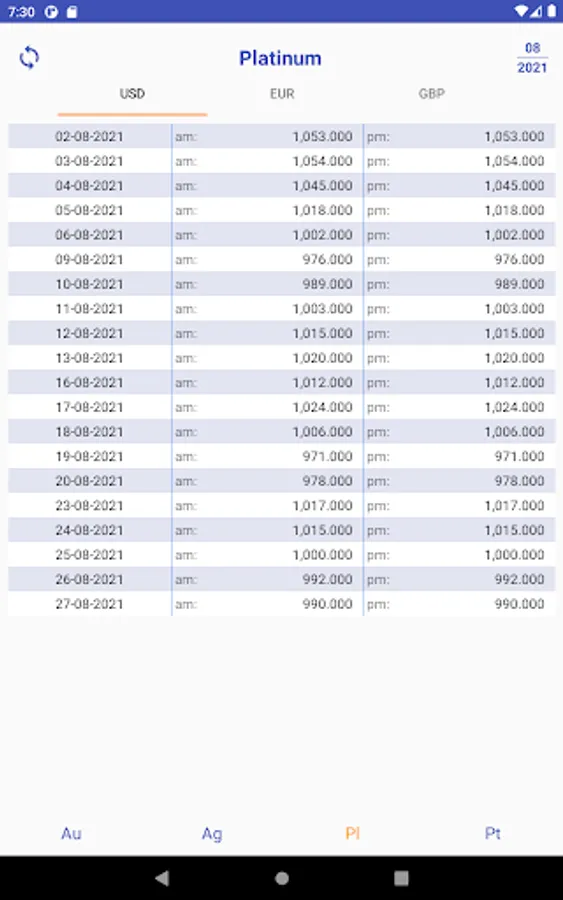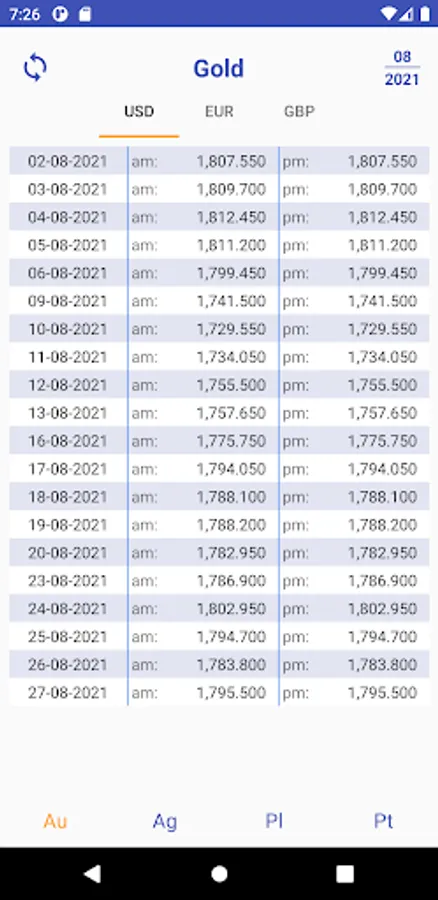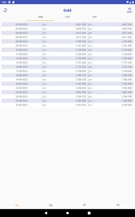 Statistics of prices of gold, silver, platinum, and palladium based on data of London Bullion Market Association.