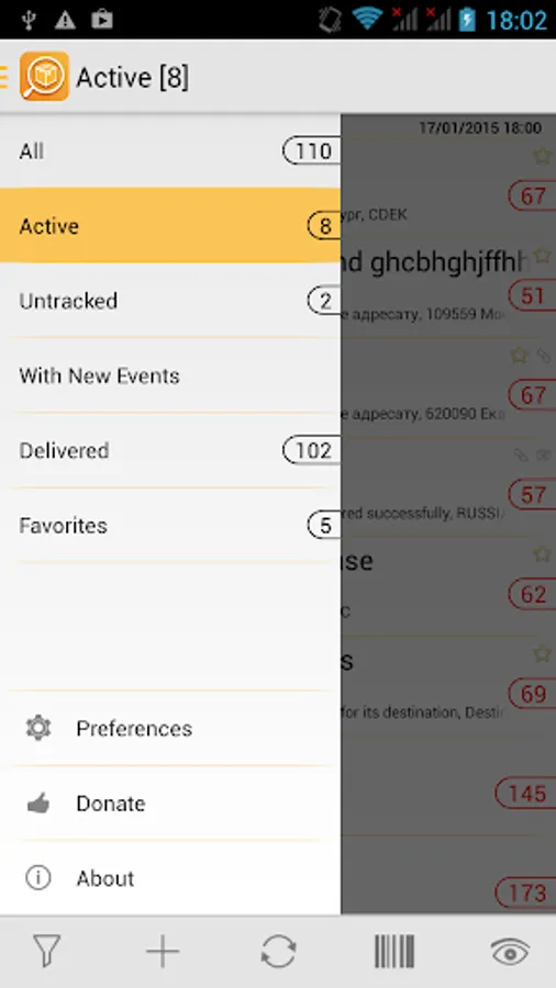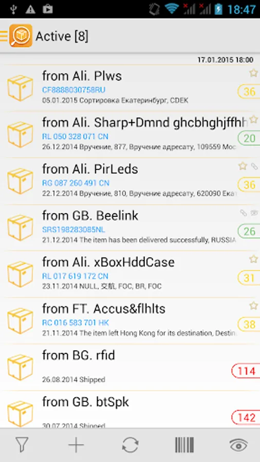 In TrackChecker Mobile you can track an unlimited number of parcels and receive notifications of new events.
