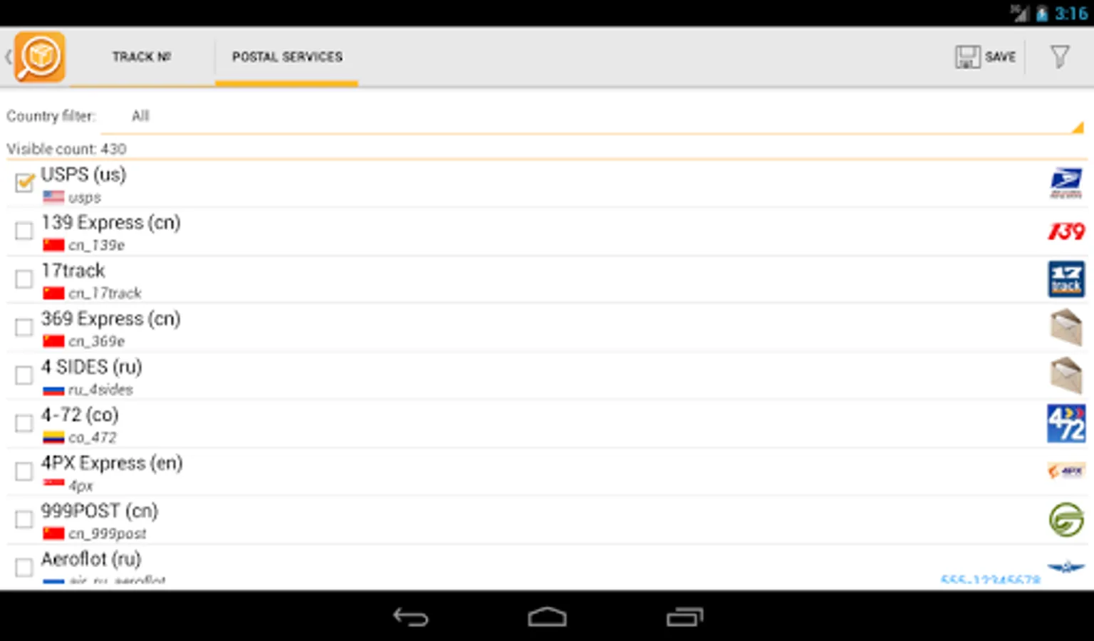 The App supports more than 600 different postal and courier services in Russia, Ukraine, Belarus, Kazakhstan, USA, Germany, Great Britain, Spain, France, China, Singapore, etc. (Over 200 countries).