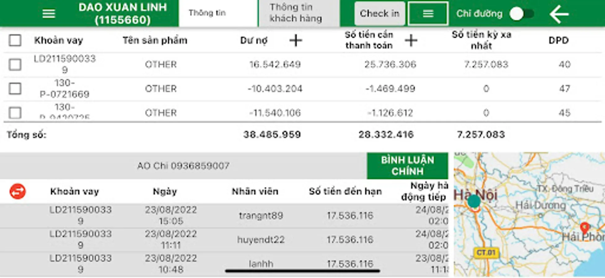 Application for working employees in VPBANK - collector field agents to record actions and interactions with VPBANK's customers.