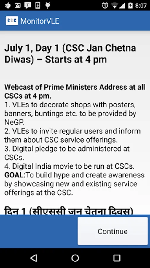This is an App exclusively for Village Level Entrepreneurs (VLE) for reporting various activities undertaken at Common Service Centres (CSC) across India as a part of Digital India program. The App requires valid CSC ID (OMT ID).