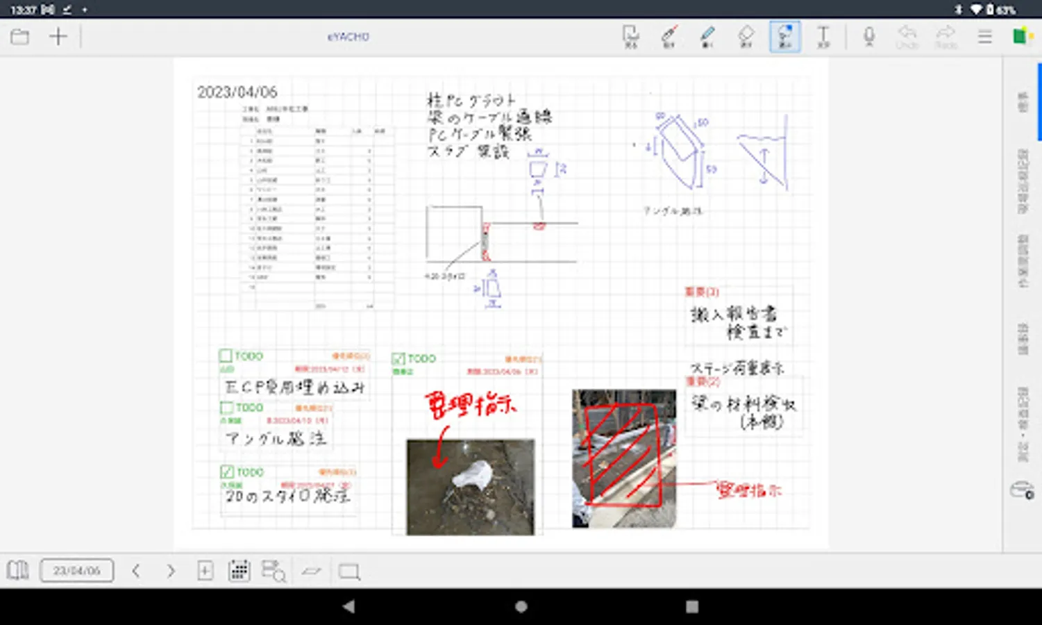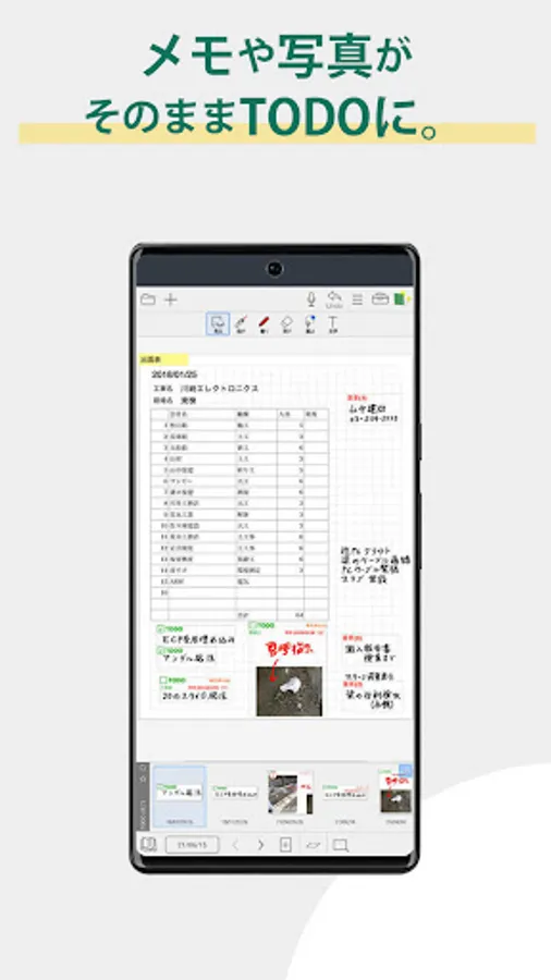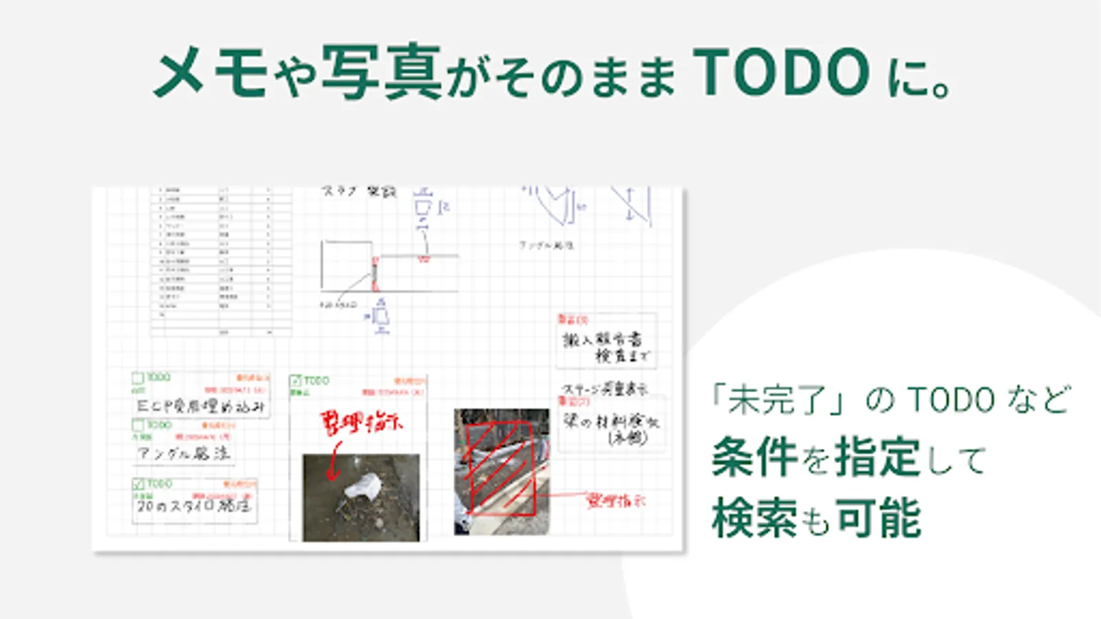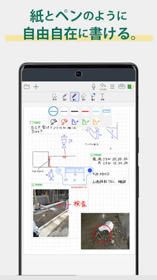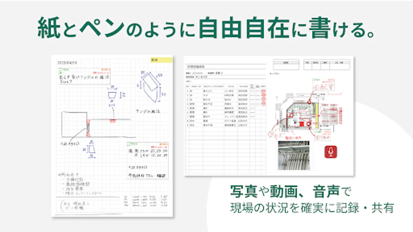 ・It is as easy to use as paper and "field notebook", and it supports not only handwriting but also text input. You can also write notes and instructions on top of photos and PDFs.