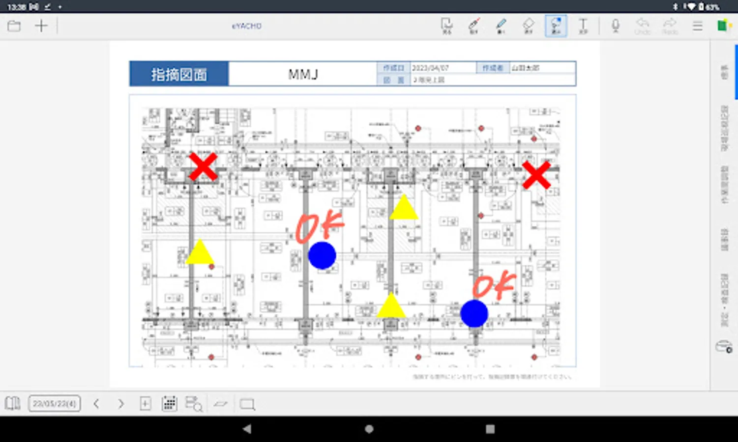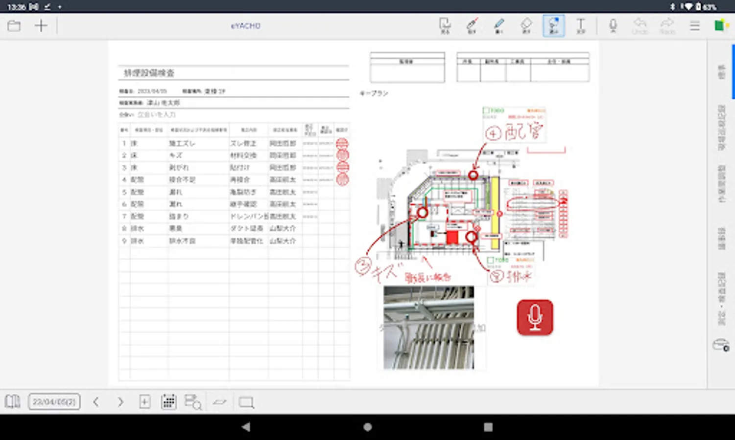 ・You can put a pin on the drawing and attach a photo or inspection item of the place.