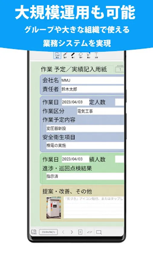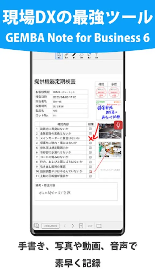 GEMBA Note for Business is an app that maximizes the performance of "on-site" as a mobile front-end for on-site operations.