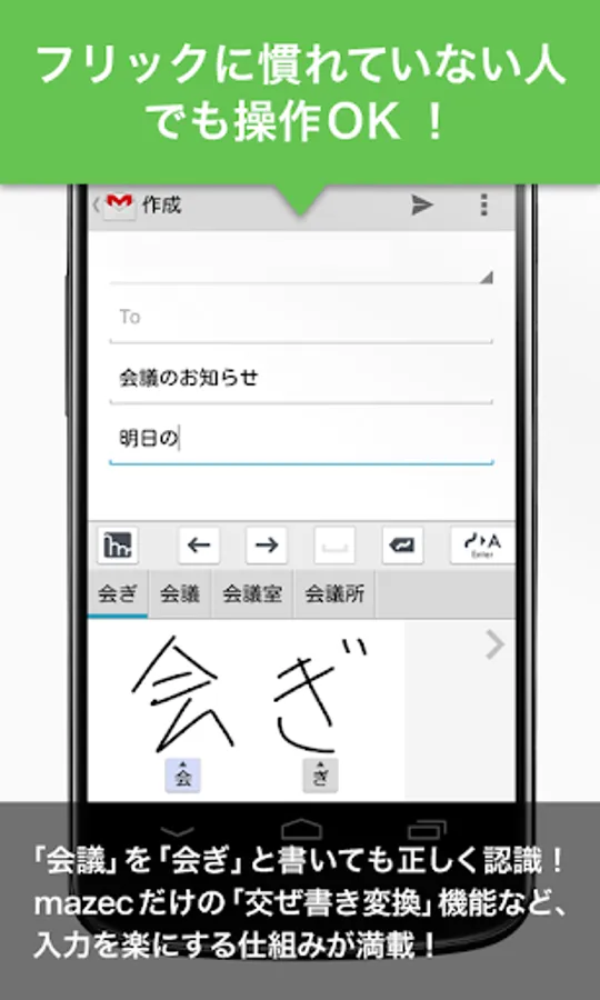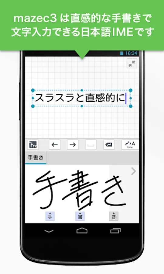 As a Japanese input method (IME) on Android, you can use intuitive handwriting input on any application.