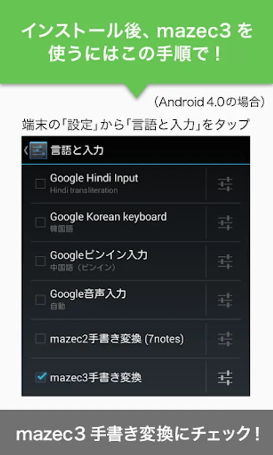 After installing “mazec3”, start it up and follow the on-screen instructions to enable “mazec3 handwriting conversion”.