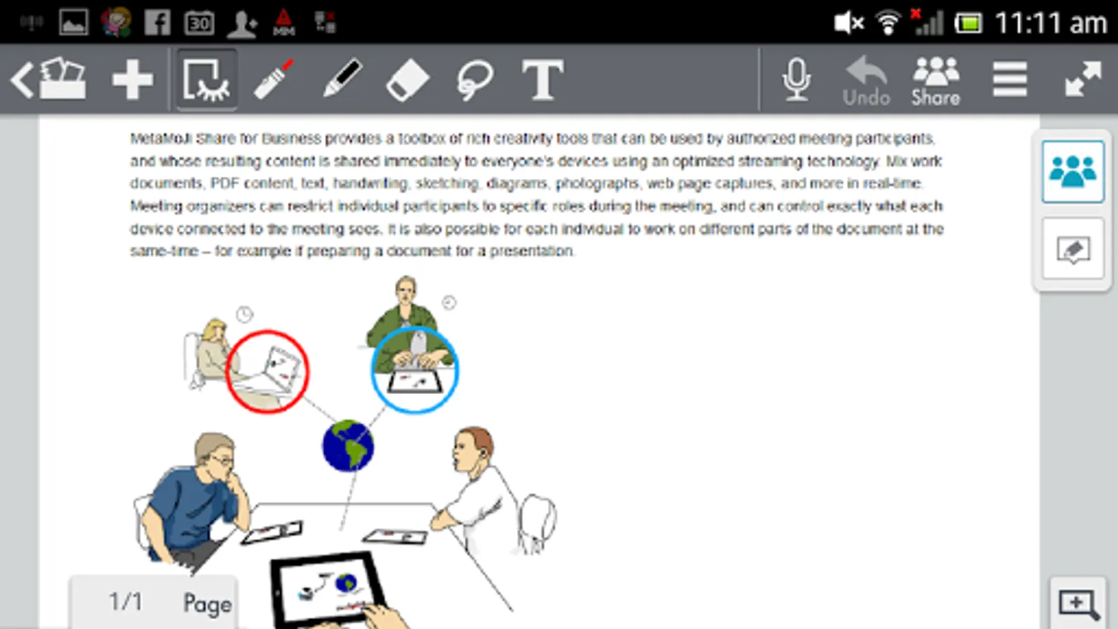 MetaMoJi Note for Business is an all in one productivity app for business use. Import PDF documents, take meeting notes, sketch as if using pen and paper, and brainstorm on a virtual whiteboard; all from your Android device.