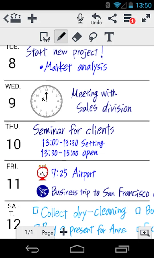 • Write, sketch or draw notes with a variety of pens, paper layouts and graphics, including calligraphy pens and inks