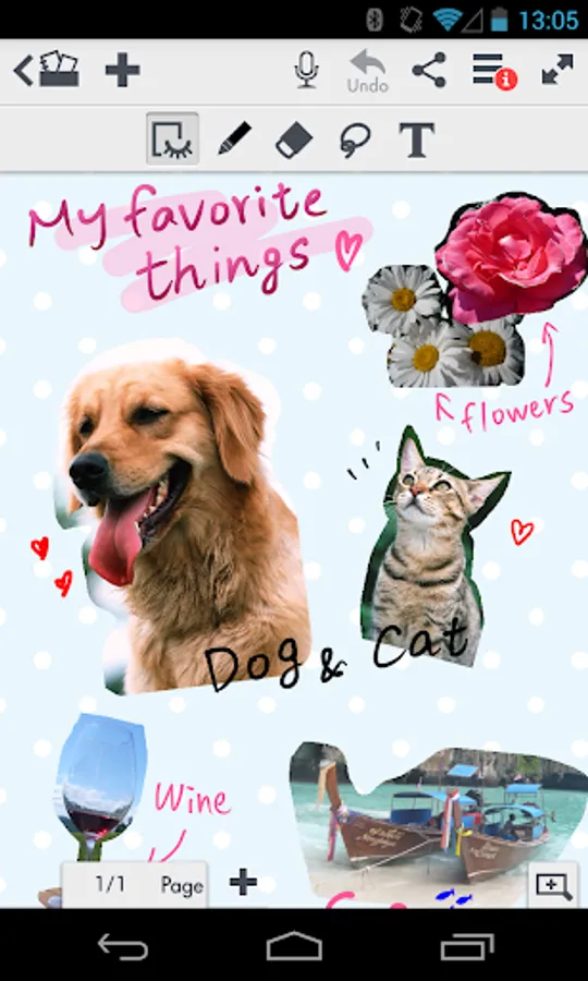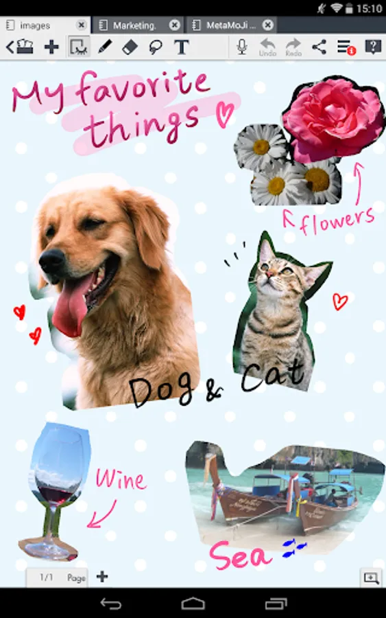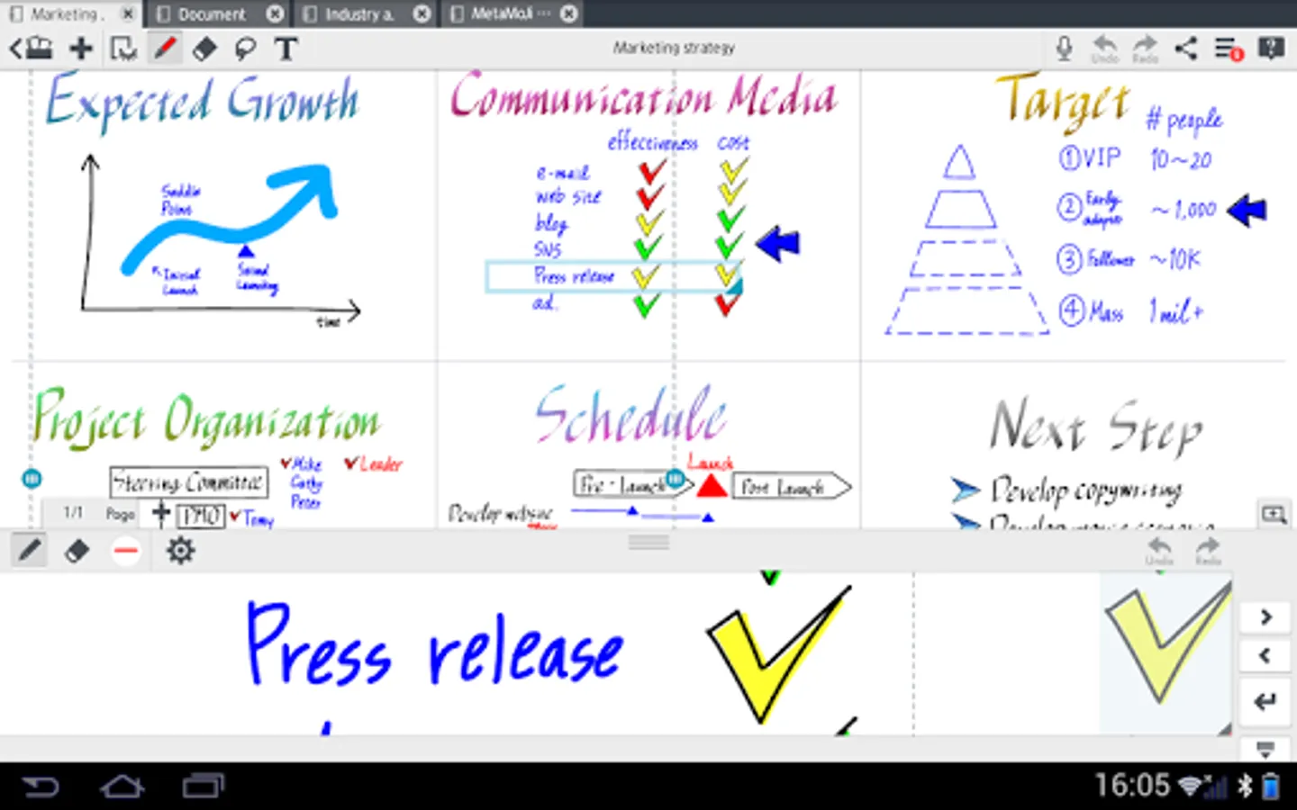 MetaMoJi Note is a virtual whiteboard for sketching, annotation, scrapbooking or digital mashup of notes and voice.